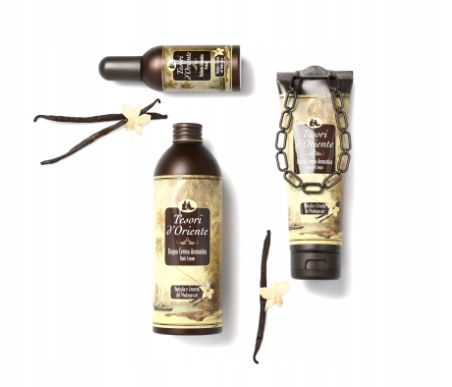Poczuj się jak w luksusowym spa dzięki Tesori d'Oriente Płynowi do kąpieli Vaniglia e Zenzero. Ten wyjątkowy produkt łączy w sobie bogactwo naturalnych składników z wyrafinowanymi aromatami, które otulają ciało i zmysły. Zanurzenie się w kąpieli z dodatkiem płynu o pojemności 500 ml daje uczucie relaksu i odprężenia, które jest niezbędne w codziennym życiu. Wyjątkowa formuła została opracowana z myślą o pielęgnacji skóry, nadając jej jedwabistą gładkość i nawilżenie.
