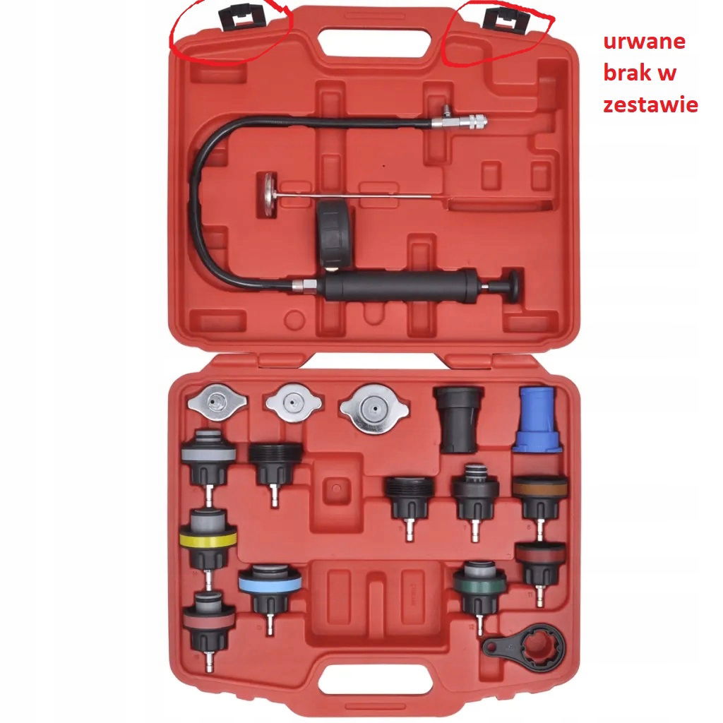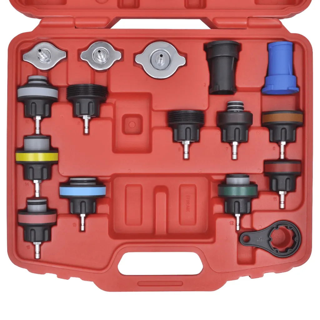 Wysokiej jakości tester ciśnienia w chłodnicy, to niezawodne narzędzie składające się z 18 elementów, które doskonale sprawdzą się zarówno w profesjonalnym warsztacie, jak i w każdym garażu.