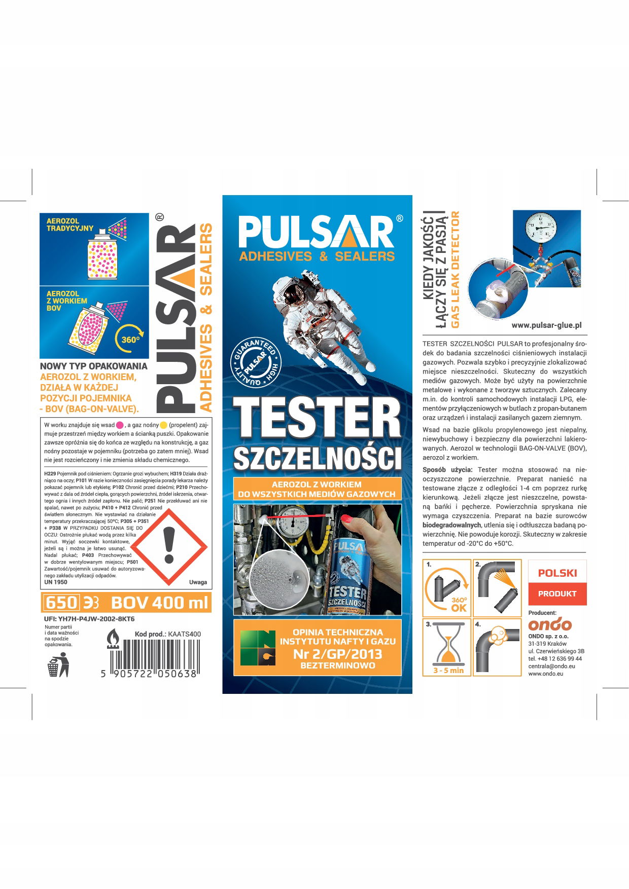 TESTER SZCZELNOŚCI GAZU PULSAR LPG WYKRYWACZ PIANKA 400 ml