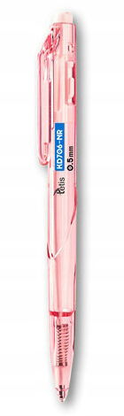 Posiada boczny automat chowania wkładu. Szerokość linii pisania wynosi 0.5mm. Dzięki odpowiedniemu wyprofilowaniu obudowy dobrze trzyma się go w dłoni.
