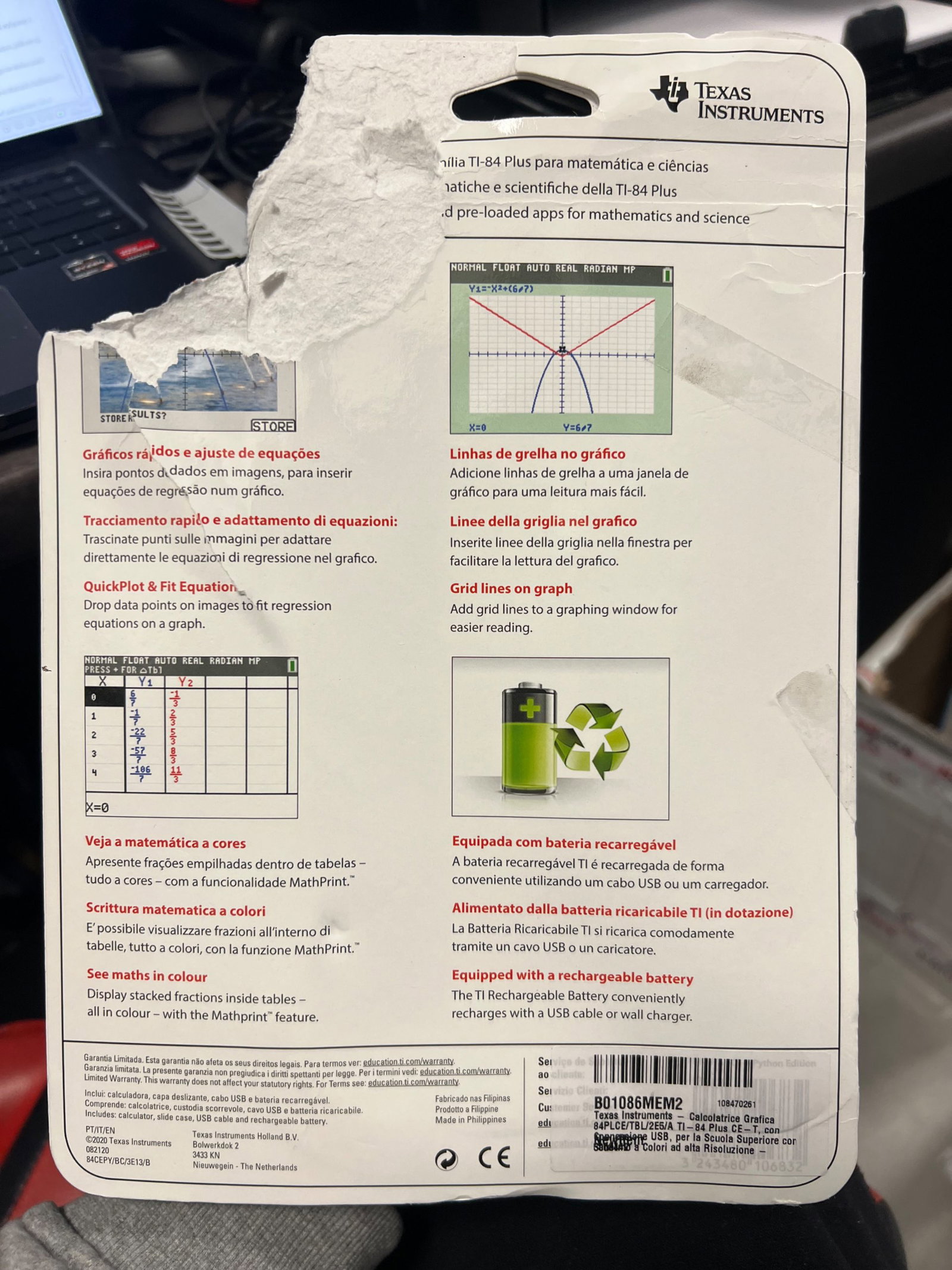 Funkcjonalność TI-84 Plus z wyświetlaczem kolorowym o wysokiej rozdzielczościDuża pojemność pamięci na jeszcze więcej aplikacji: 3 MB ROM, 154 KB RAMTryb MathPrint: wyświetlanie jak w podręczniku matematycznym, np. wyświetlanie ułamków w tabelach i matrycach – również w kolorzeZintegrowana bateria
