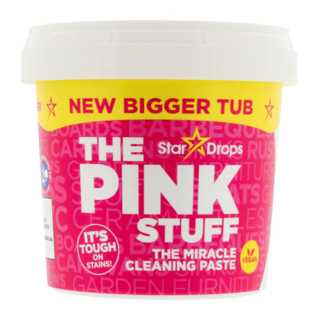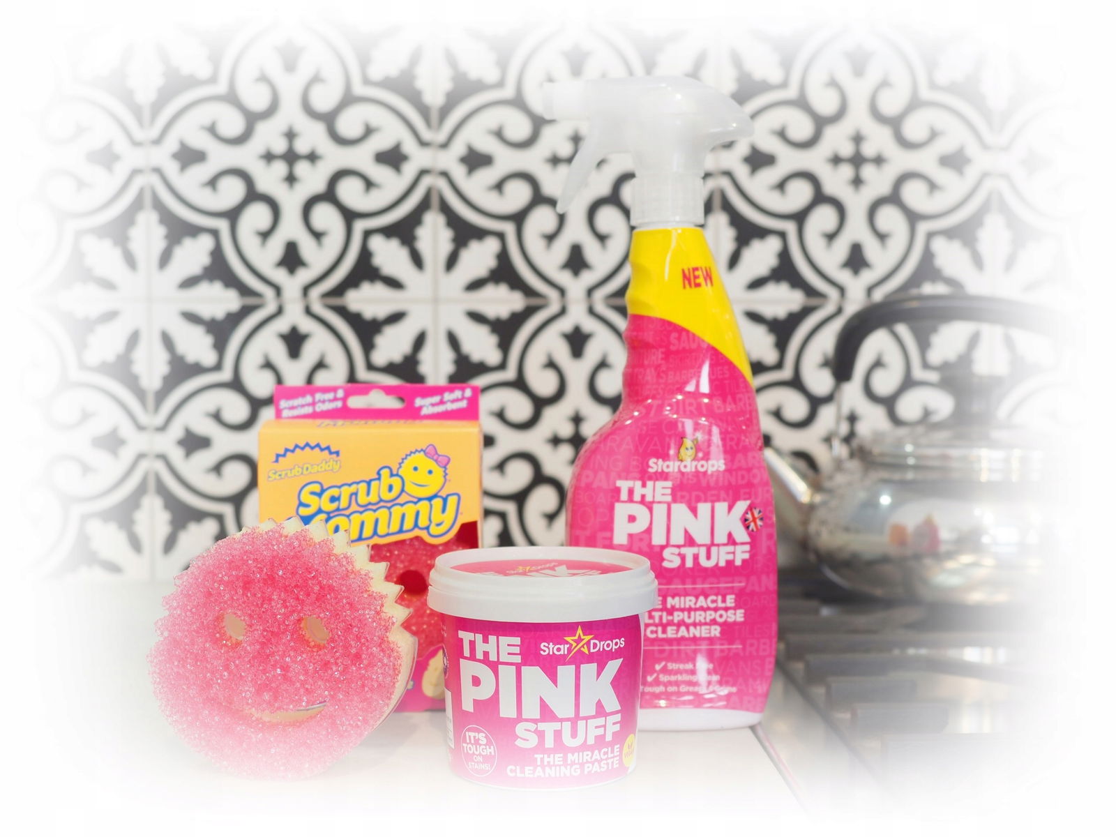 Pasta do czyszczenia THE PINK STUFF to najlepszy produkt na najcięższe plamy – patelnie, grille, płytki ceramiczne, szkło, rdzę, umywalkę, UPCV, meble ogrodowe, powierzchnie malowane i wiele innych. Początki receptury pasty sięgają 1938 roku. Pasta jest biodegradowalna, a jej skład oparty jest na bazie oleju roślinnego. Nie zawiera także fosforanów, kwasów oraz składników pochodzenia zwierzęcego.
