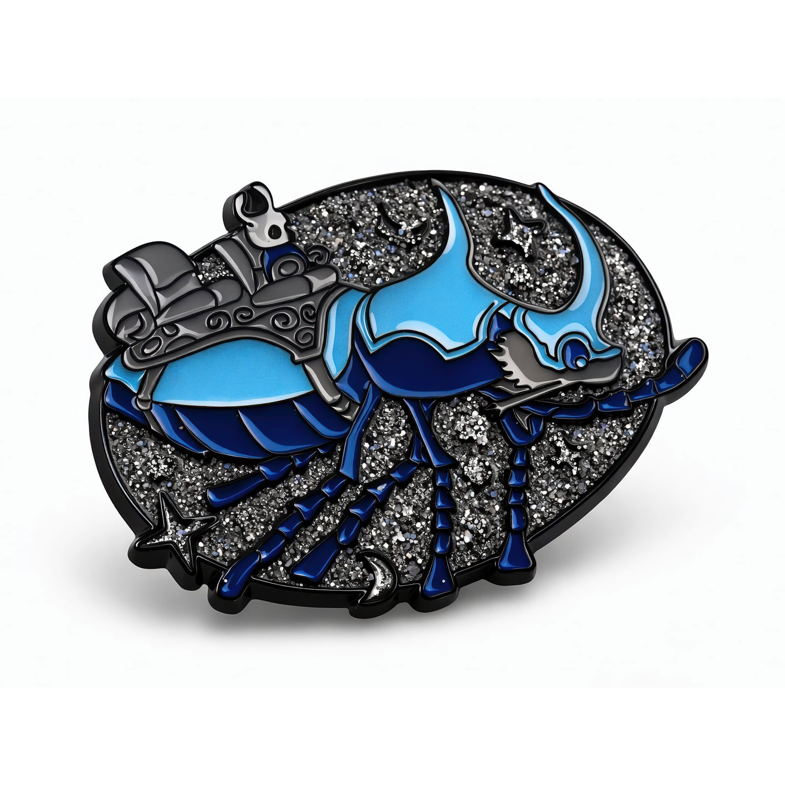 Mówią, że Naczynie nie zawiera w sobie niczego… ale czy to kiedykolwiek była prawda? Ta przypinka o wymiarach 5 cm, wykonana z wytrzymałego metalu, oddaje ikoniczną, milczącą postać Pustego Rycerza, z wygrawerowanymi detalami jego skorupy i błyszczącym, wypolerowanym wykończeniem. Bezpieczne zapięcie z tyłu zapewnia, że ten miniaturowy strażnik pozostanie przymocowany do kurtki, torby lub zostanie wyeksponowany obok innych relikwii z Hallownest. Zbierz ten subtelny fragment królestwa lub podaruj go jako cenny prezent innemu Rycerzowi.
