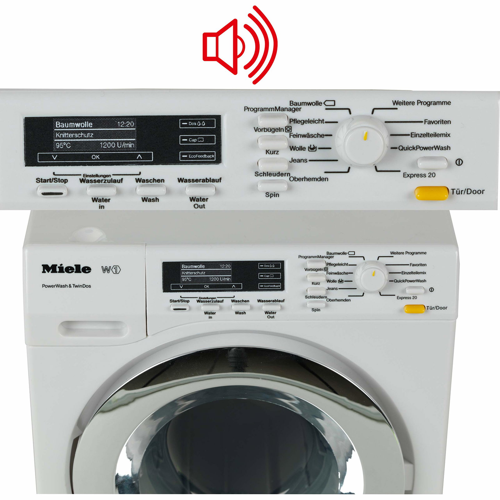 Cyklom prania i wirowania (dostępne są 4 różne programy) towarzyszą oryginalne odgłosy