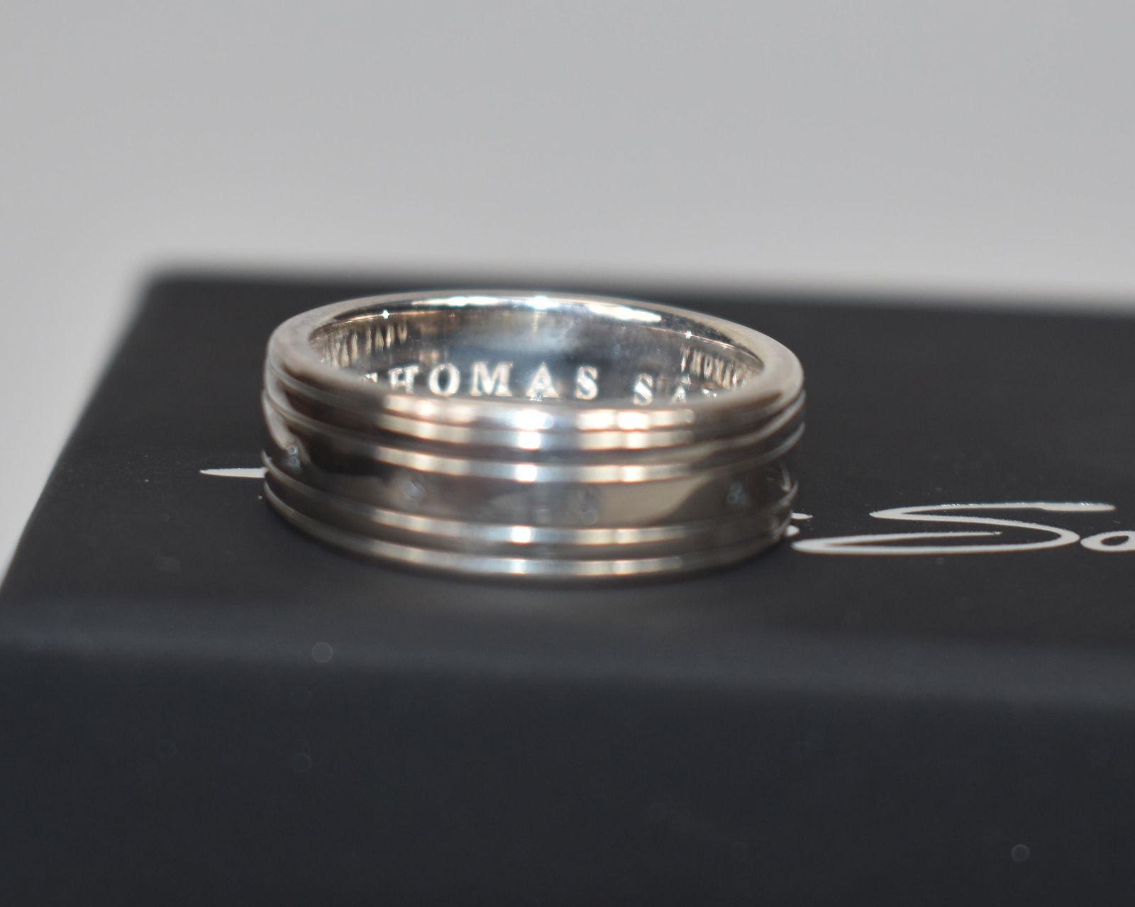Elegancki i ponadczasowy pierścionek Thomas Sabo Band Ring TR1999-001 wykonany z najwyższej jakości srebra próby 925. Model wyróżnia się minimalistycznym designem z grawerowanym napisem, dzięki czemu doskonale podkreśla styl zarówno kobiet, jak i mężczyzn.