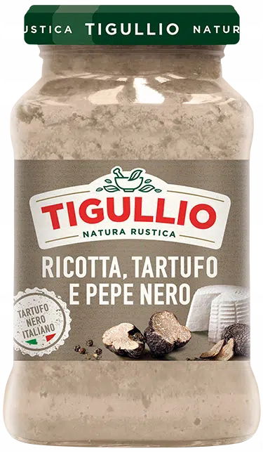 Delikatność świeżej ricotty spotyka się z intensywnością włoskiej czarnej trufli, wzmocnioną pikantnym akcentem czarnego pieprzu. Z wielkiego doświadczenia Tigullio, właśnie dla Ciebie prawdziwa specjalność, która podkreśli smak Twoich potraw.