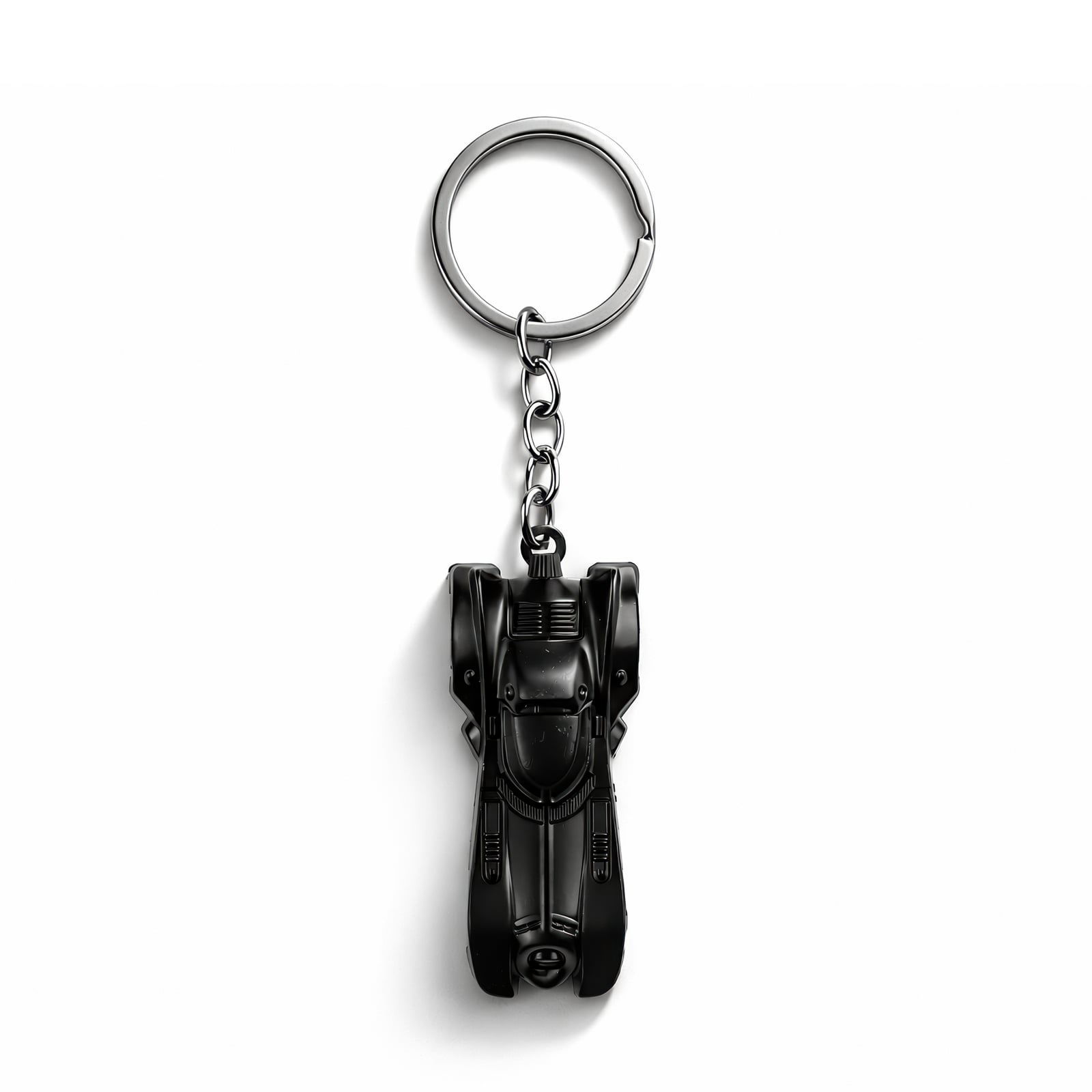 Przemierzaj nocny krajobraz Gotham z dłoni dzięki tej miniaturowej Batmobilowi w stylu Tima Burtona. Osiem centymetrów solidnego metalu oddaje kultowy, kanciasty kształt – podwójne skrzydła nietoperza, przesadzone reflektory i nisko osadzone podwozie – wierne gotyckiemu pojazdowi z filmu z 1989 roku. Element zawieszony jest na wytrzymałym kółku do kluczy, pozwalając błyszczącej, ciemnej karoserii obracać się podczas potrząsania go na torbach, pasach lub pasie narzędzi cosplayer’a. Obowiązkowy przedmiot kolekcjonerski dla entuzjastów Batmana, idealny do ekspozycji, podarowania lub dodania odrobiny ponurego stylu Burtona do codziennych akcesoriów.