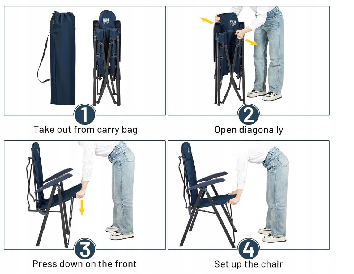 - ✴️ Materiały premium i solidna konstrukcja-Wykonane z wytrzymałego poliestru 600D oraz powlekanej aluminiowej ramy. Trójkątna konstrukcja nóg i wysokie oparcie zapewniają stabilność oraz nośność do 150 kg. Płaskie stopki zmniejszają ryzyko poślizgu i zwiększają bezpieczeństwo.