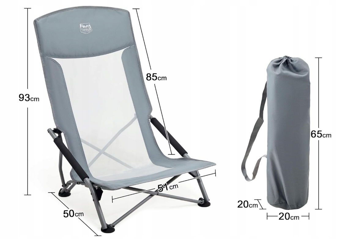 TIMBER RIDGE Krzesło plażowe z wysokim oparciem, szare