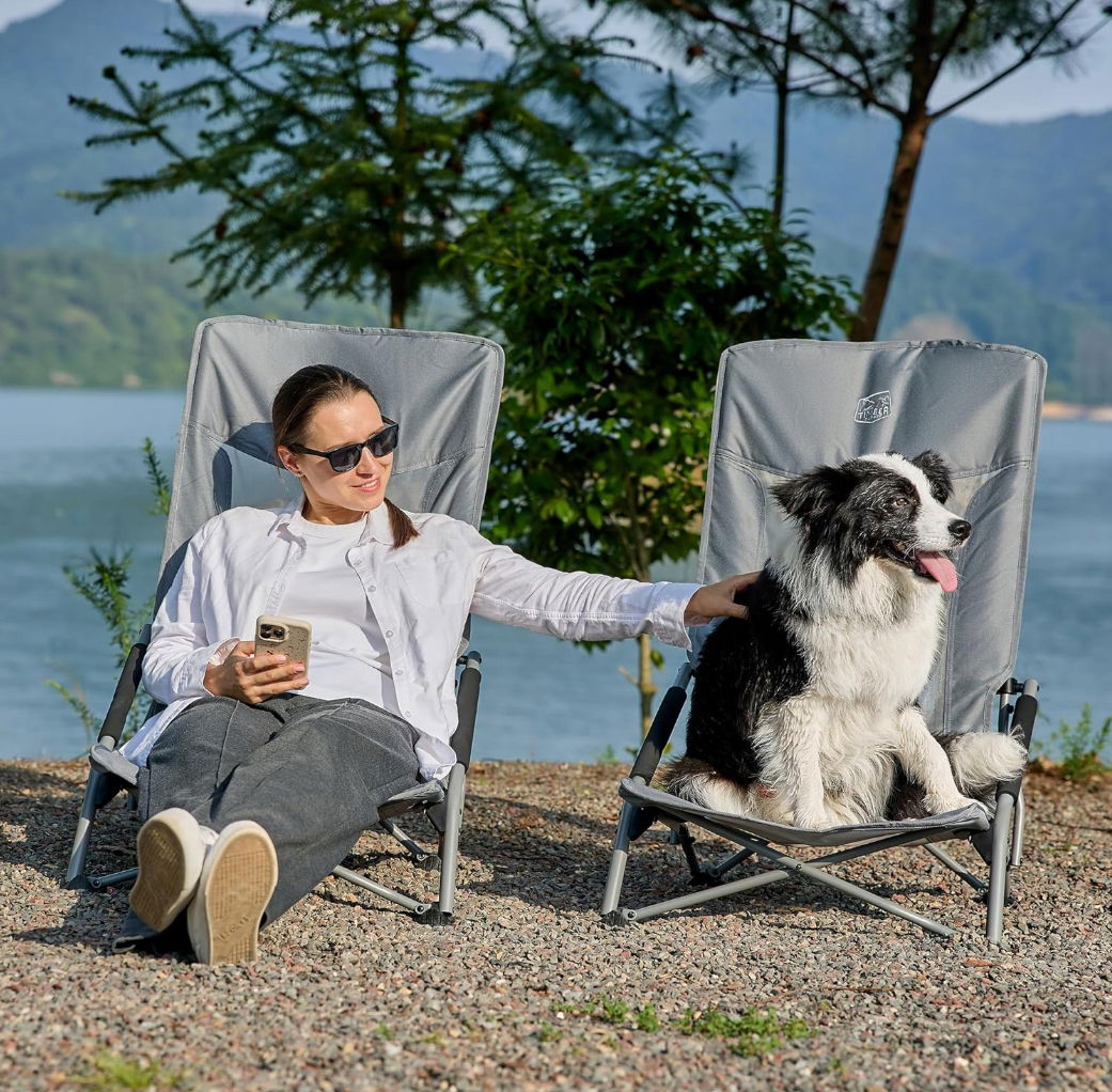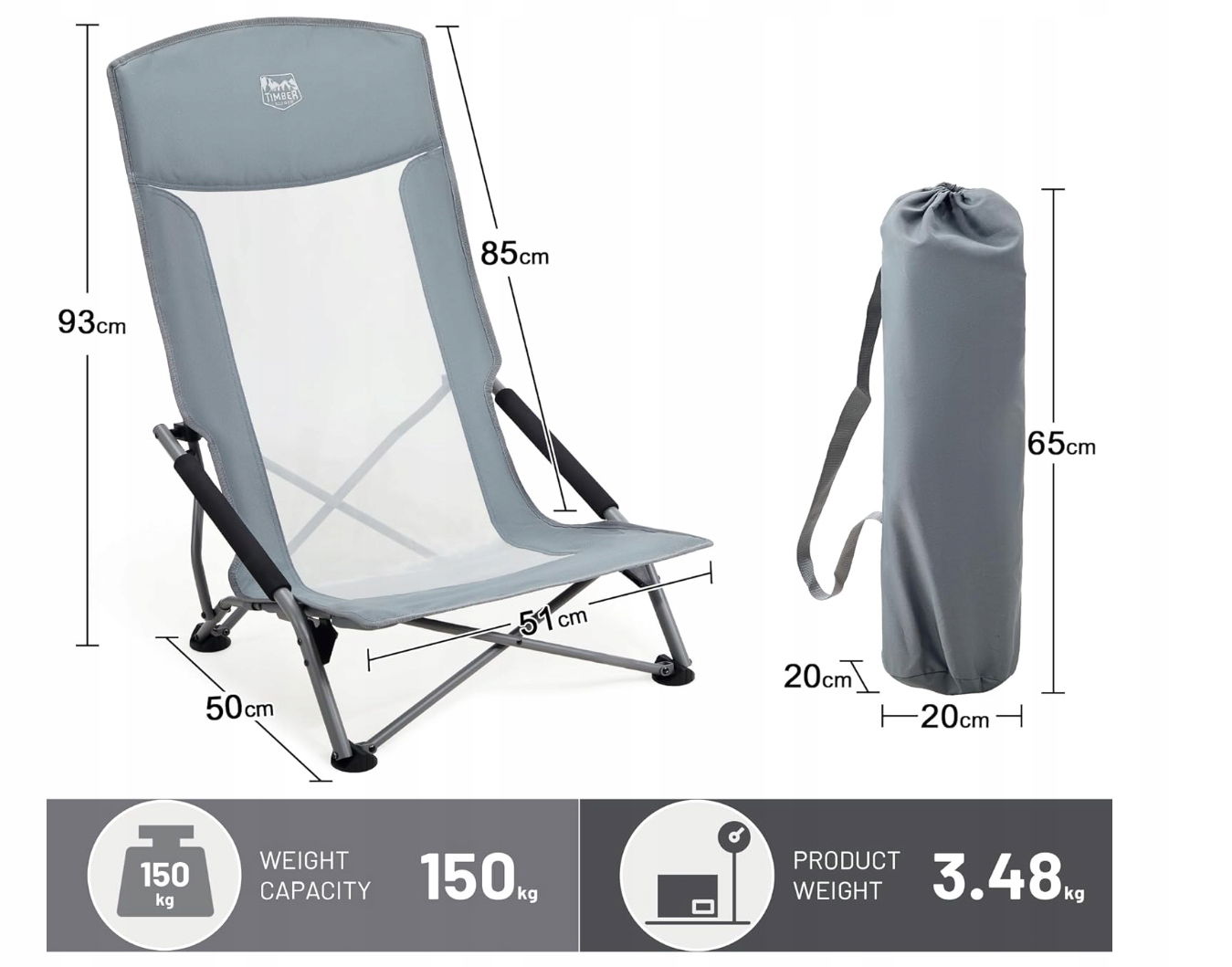 - ✴️ Zestaw 2 krzeseł plażowych TIMBER RIDGE-Kompletny zestaw dwóch wygodnych krzeseł z wysokim oparciem, zaprojektowanych z myślą o maksymalnym komforcie wypoczynku na plaży, w ogrodzie, na kempingu czy działce.