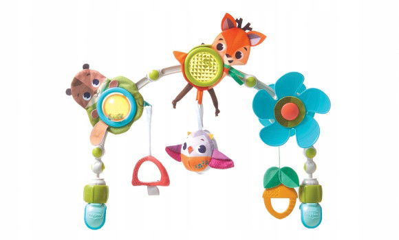 Elastyczny łuk z zabawkami łatwo dostosowuje się do wieku dziecka i jego preferencji zabawy.