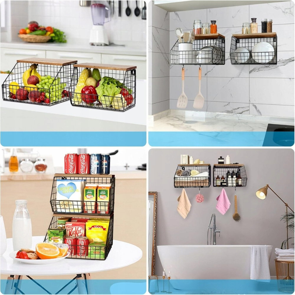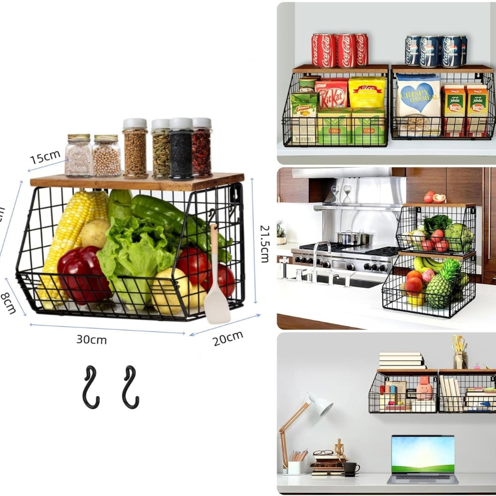 ✨TIOYOTY Kosz na owoce z drewnianą pokrywką – organizer kuchenny✨