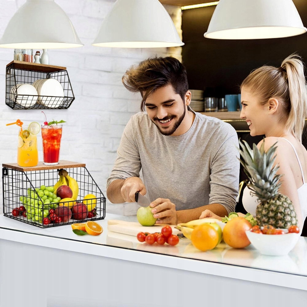 Funkcjonalny i elegancki kosz kuchenny na blat lub ścianę, który nie tylko przechowa warzywa i owoce, ale też ozdobi Twoją kuchnię. Dzięki drewnianej pokrywce zyskujesz dodatkową przestrzeń, a stalowa konstrukcja zapewnia trwałość na lata.