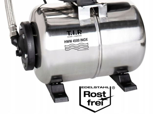 Pompa HWW 4500 INOX niemieckiej firmy T.I.P. to urządzenie bardzo łatwe w montażu i obsłudze, a także wykonane z wysokiej jakości materiałów i stosunkowo tanie. Producent w budowie wykorzystał najlepsze materiały, trwałe i mocne oraz przede wszystkim odporne na zużycie.