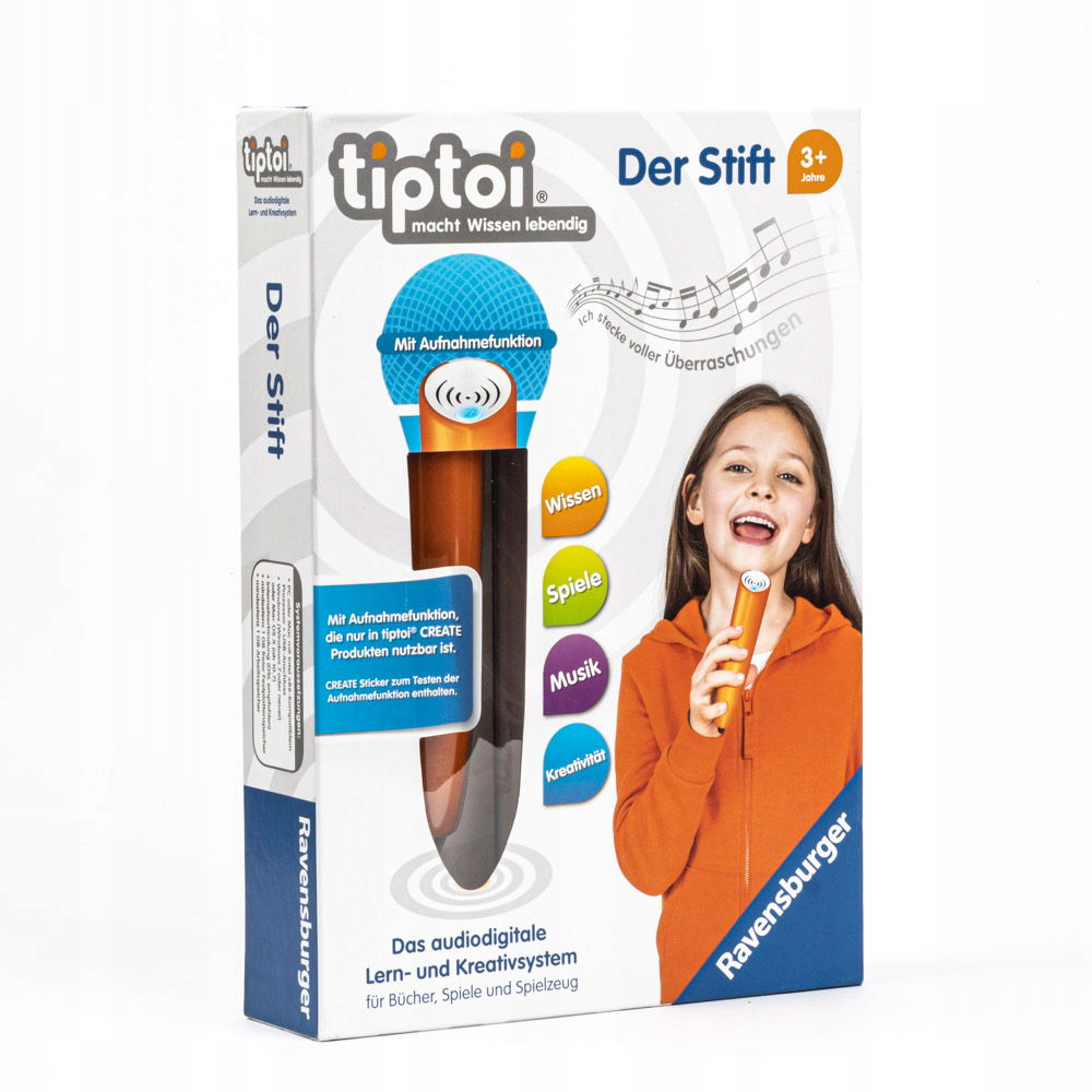 - Interaktywna nauka: TIPTOI to nie tylko długopis, ale także inteligentne urządzenie edukacyjne, które reaguje na specjalne książki, gry i inne materiały. Wystarczy dotknąć długopisem wybranego elementu, a TIPTOI ożyje, wydając dźwięki, czytając teksty, a nawet zadając pytania!
