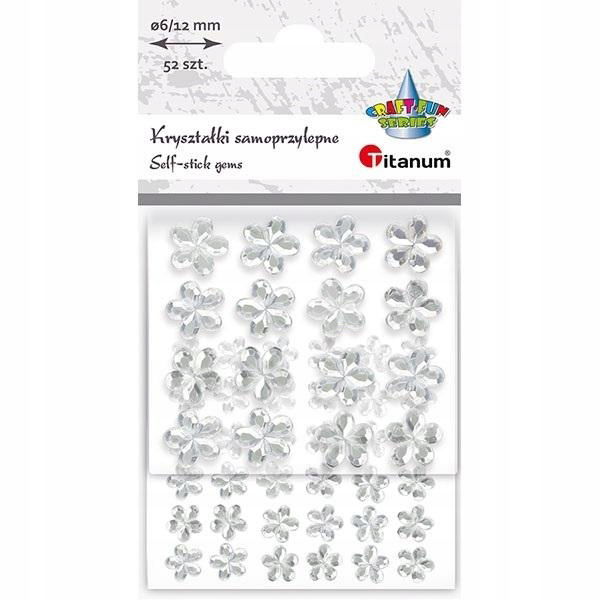 Titanum: Kryształki samoprzylepne kwiaty 52szt srebrne