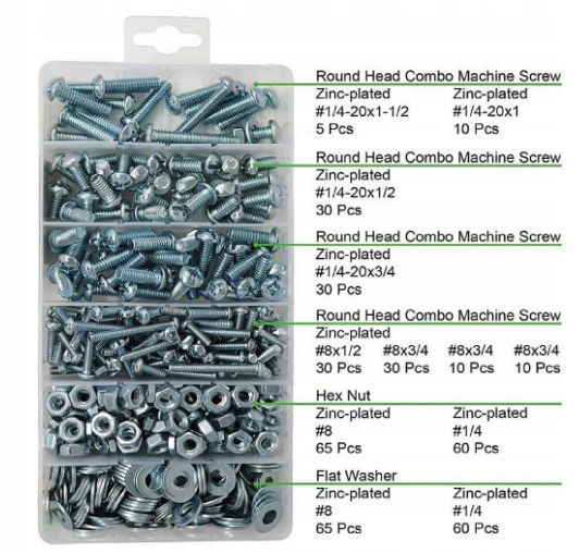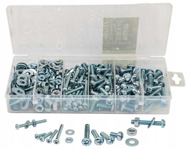 ✔️ Zestaw obejmuje śruby maszynowe o różnych rozmiarach, płaskie podkładki i nakrętki sześciokątne ze śrubami maszynowymi w pojemniku wielokrotnego użytku.