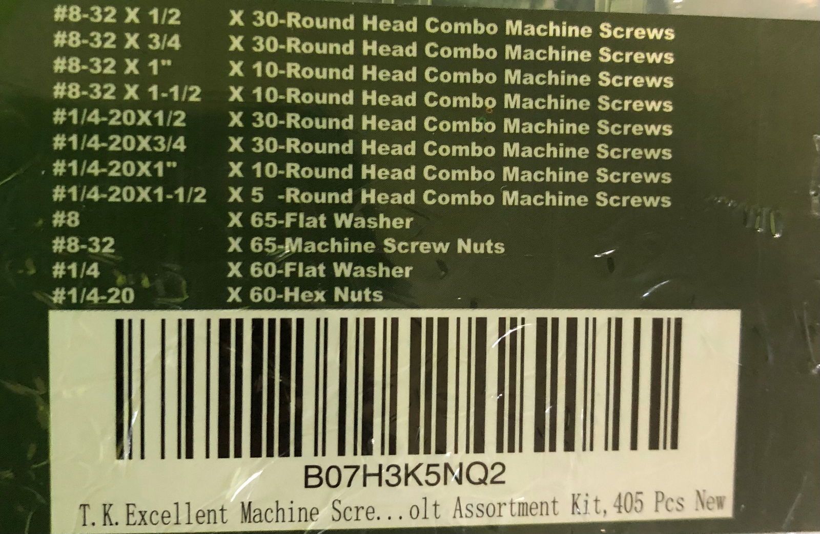 T.K.Excellent śruba maszynowa, nakrętka i podkładka, 405 sztuk