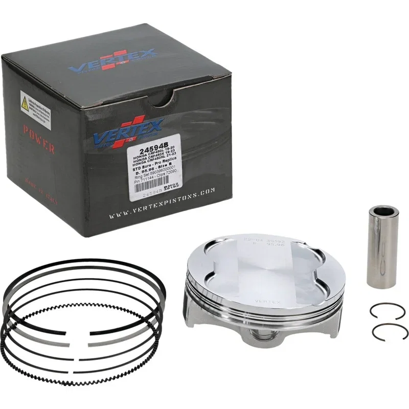 VERTEX TŁOK HONDA CRF 450X '19-'24, CRF 450RL '21-'24, CRF 450L '19-'20 REPLICA (CRF450) (95,96MM) - Tłok zamienny przeznaczony do silników motocykli Honda CRF 450X, CRF 450RL oraz CRF 450L. Służy do odbudowy lub naprawy jednostki napędowej, zapewniając standardowe parametry pracy.