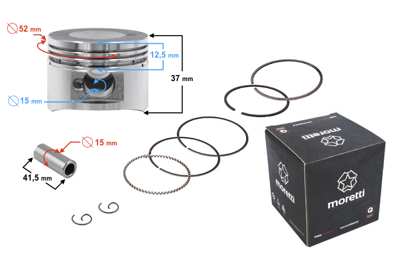 Tłok Moretti 125cm3 Skuter 4T 52,4mm komplet - TLOSK1254TPO15TTP000