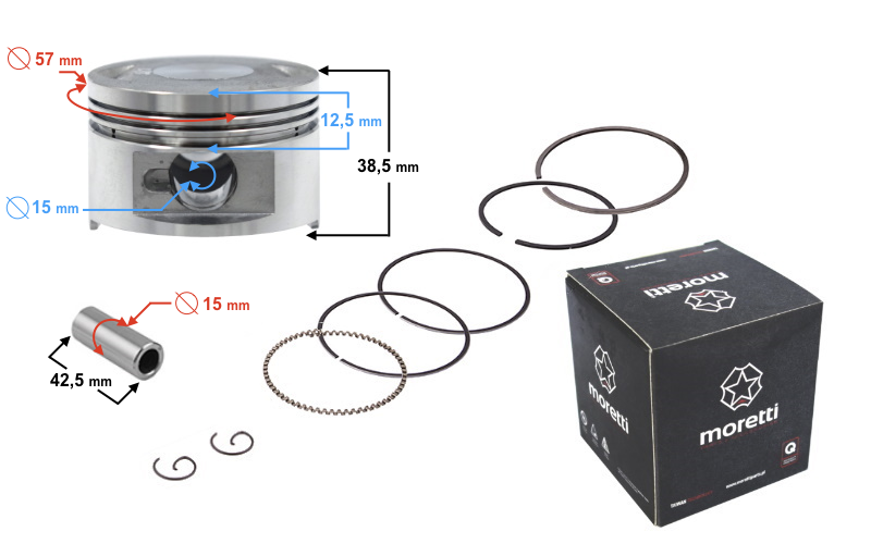 Tłok Moretti 150cc Skuter 4T, śr:57,4, sw:15, c:20, komplet Skuter 4T /// MorettiKod produktu:
