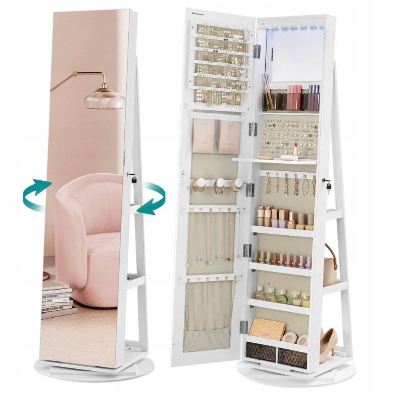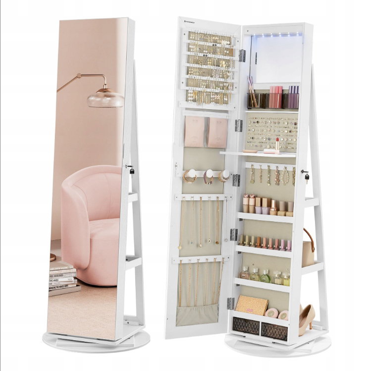 Toaletka stojąca na biżuterię obrotowa lustro LED Songmics JJC007W02V1