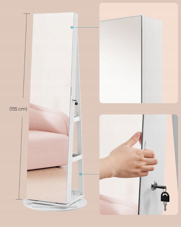 - ✴️Lustro bez ramy, ładniejsza: ta szafka na biżuterię jest wyposażona w lustro bez ramy o wymiarach 37 x 155 cm, które jest przyjemne dla oczu i zapewnia odbicie od stóp do głów, dzięki czemu codzienne sprawdzanie stroju jest przyjemniejsze.