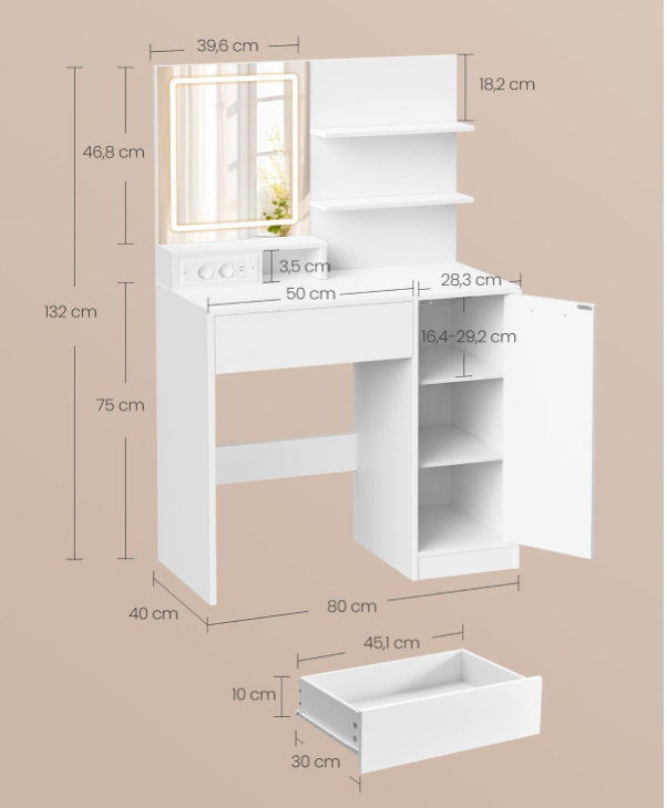- ✴️Solidna i łatwa w pielęgnacji: Ta toaletka wykonana z wysokiej jakości płyty wiórowej jest solidna i trwała. Jej powierzchnia jest odporna na zużycie i łatwa do czyszczenia, co pozwala na długotrwałe użytkowanie.