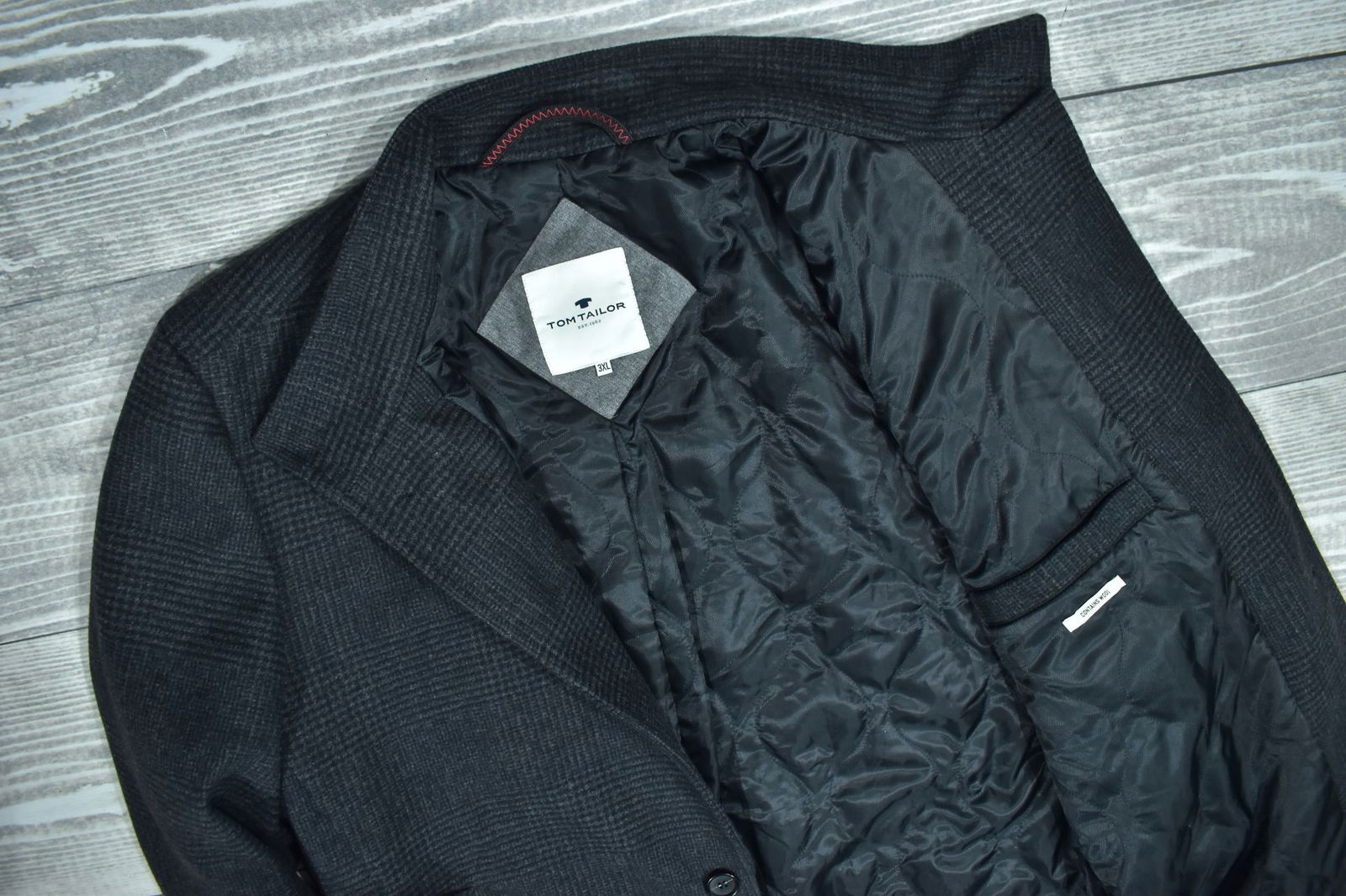 TOM TAILOR Contains Wool Jednorzędowy Szary Płaszcz Męski 3XL
