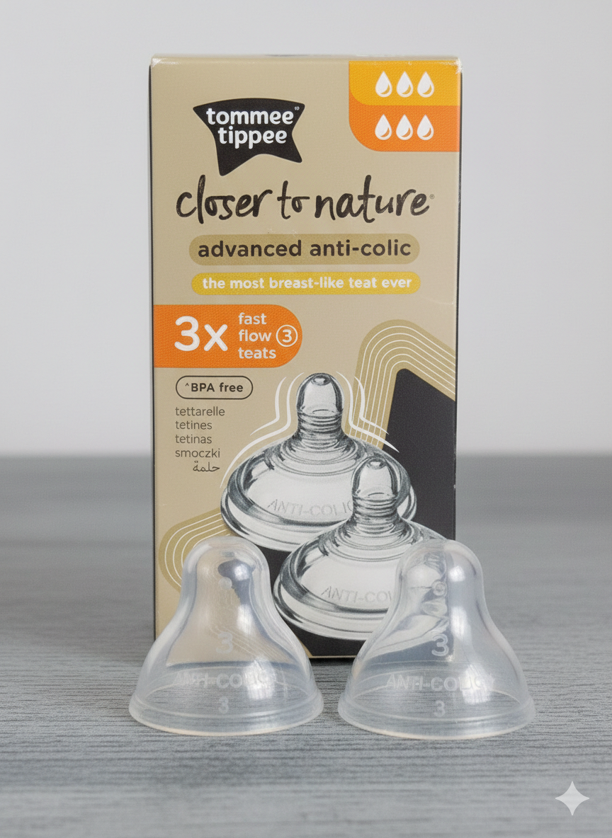 - Przepływ 3 (Fast Flow): Optymalna prędkość wypływu pokarmu dla starszych niemowląt (6m+), które potrzebują większych porcji w krótszym czasie.