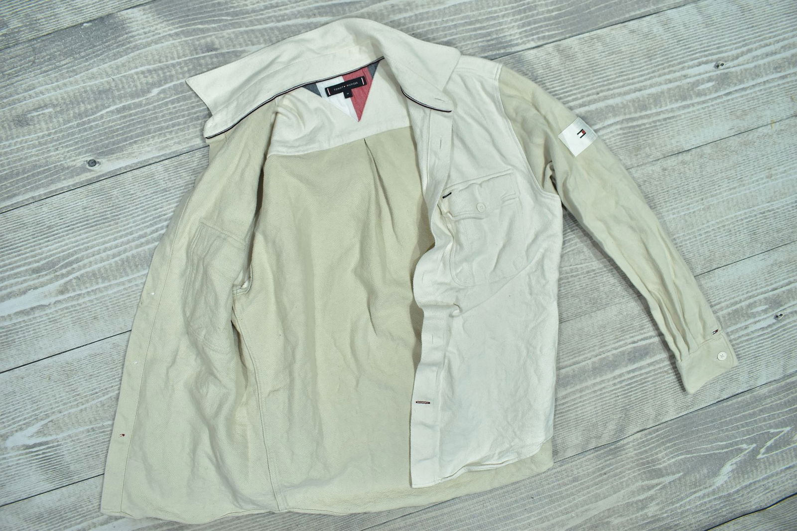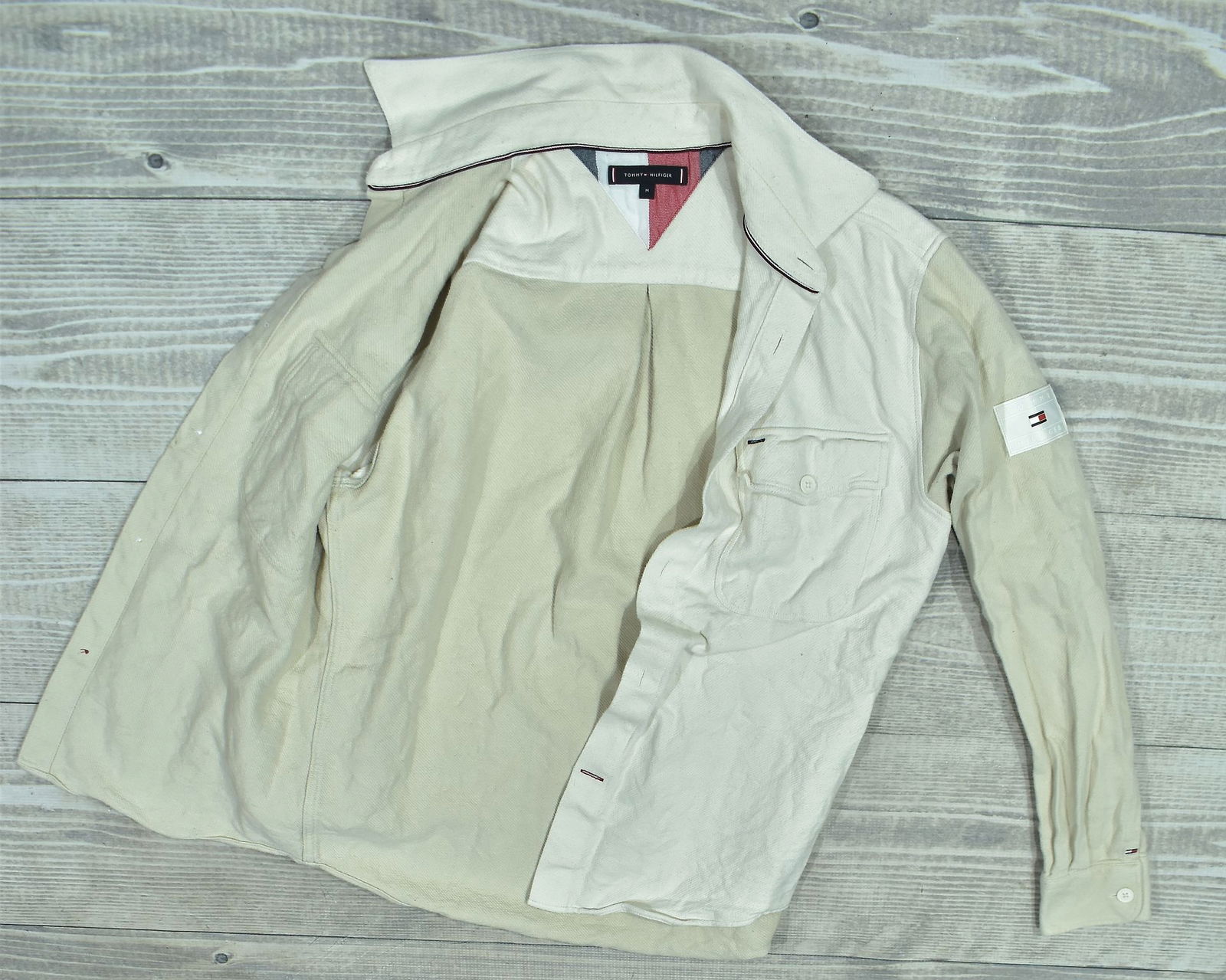 TOMMY HILFIGER Beżowa Koszula z Aplikacją na Rękawie M