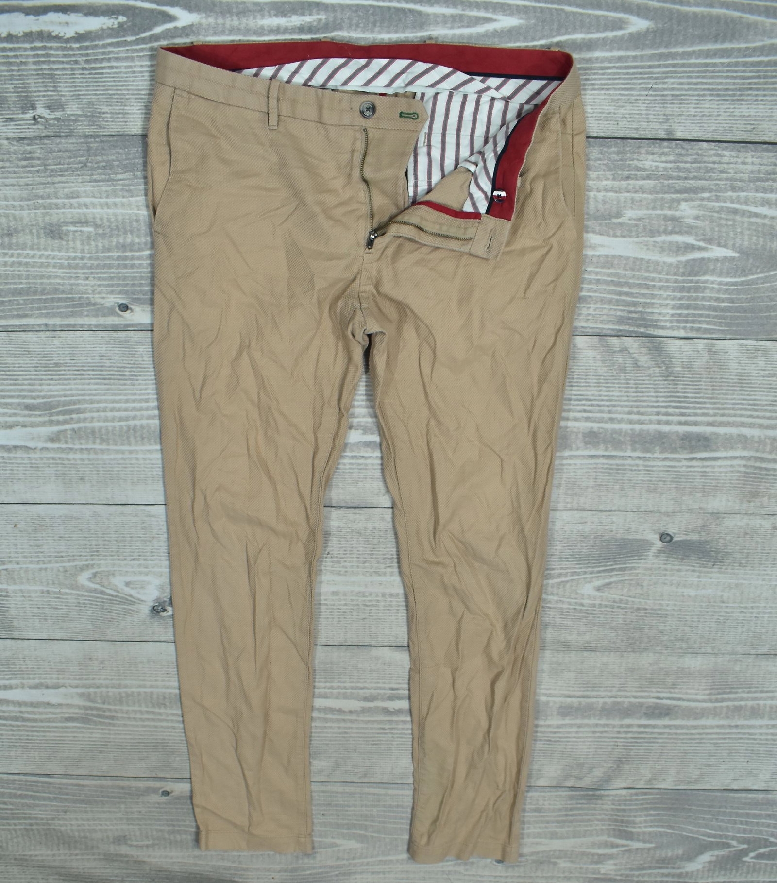 Oferujemy używane spodnie chinosy marki Tommy Hilfiger w rozmiarze W36 L34. Te eleganckie i jednocześnie komfortowe chinosy wykonane są z przewagi bawełny (99%) z dodatkiem elastanu (1%), co zapewnia swobodę ruchów oraz idealne dopasowanie.