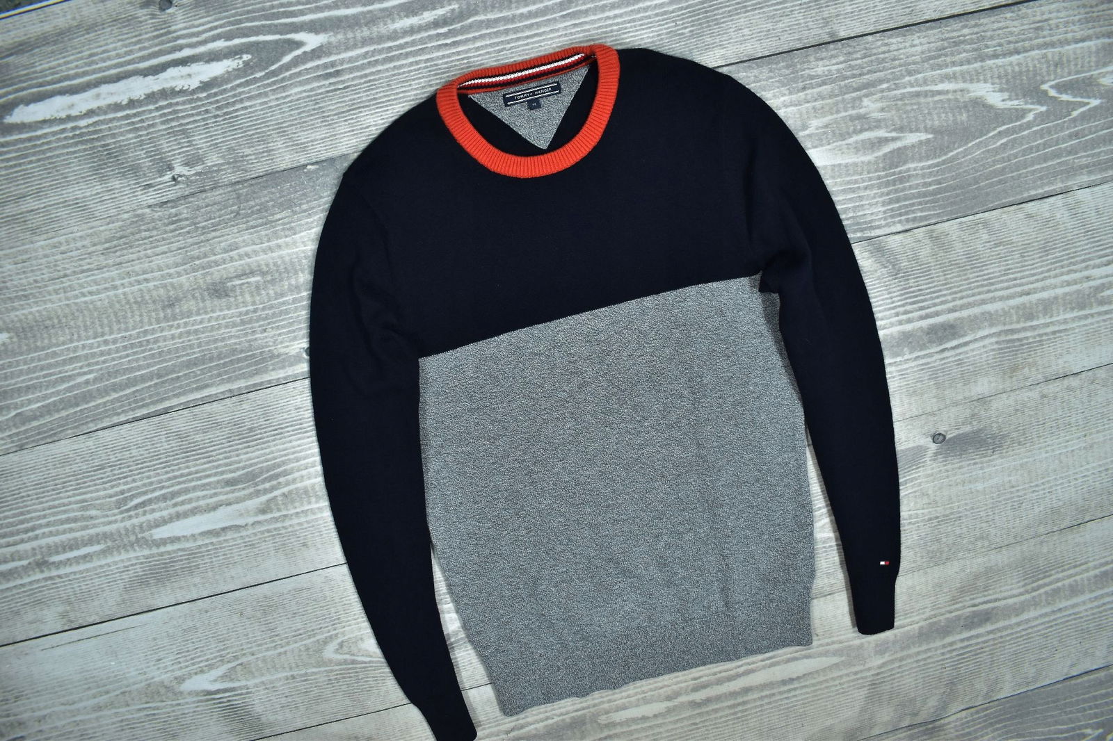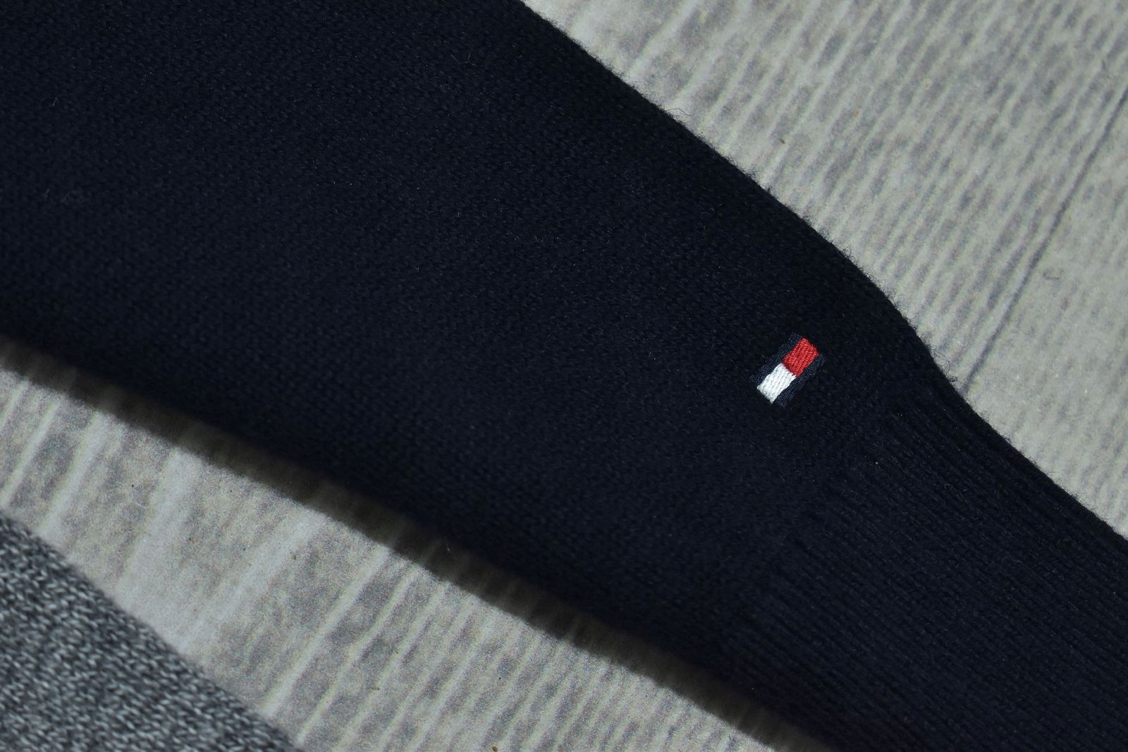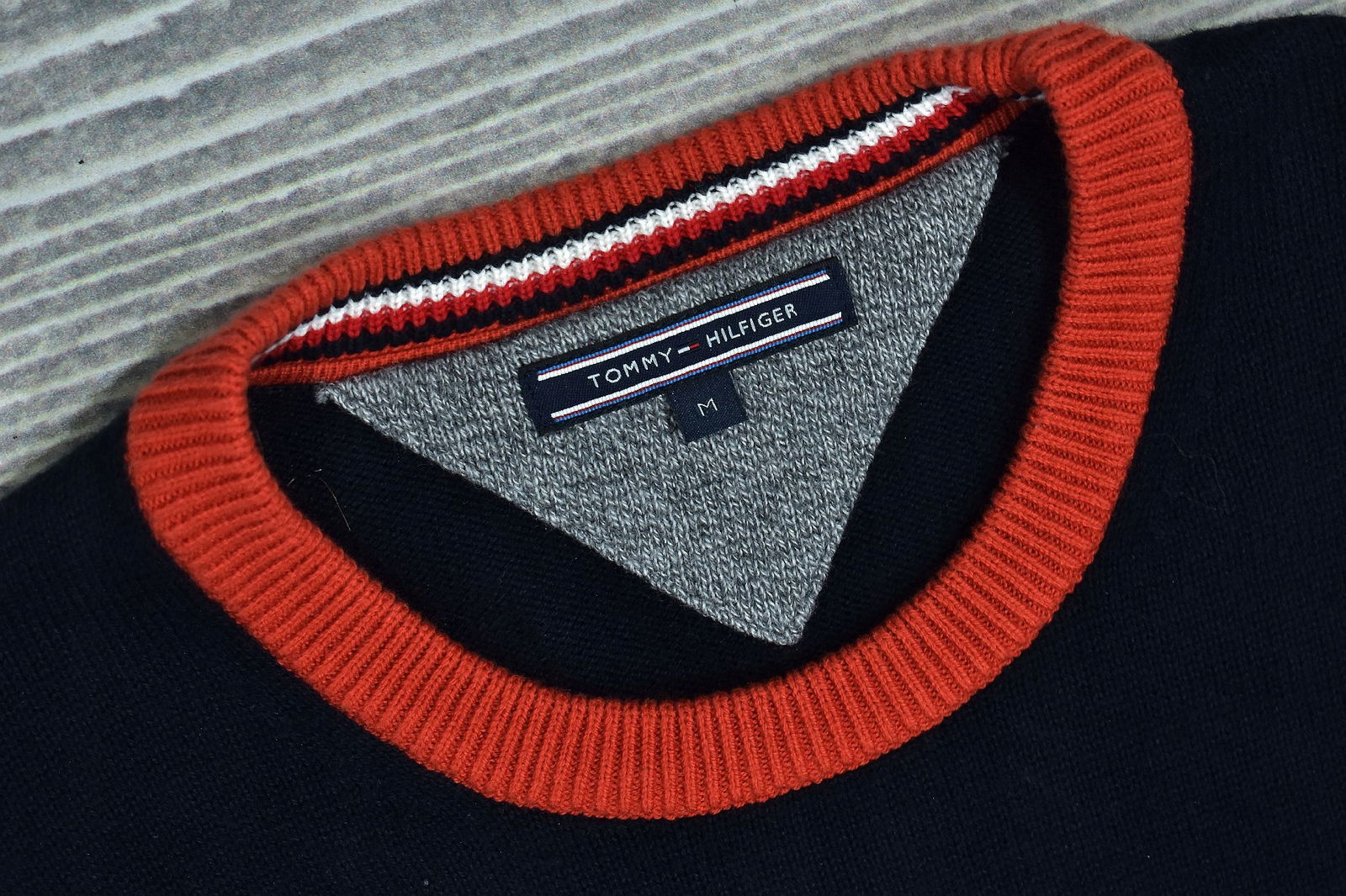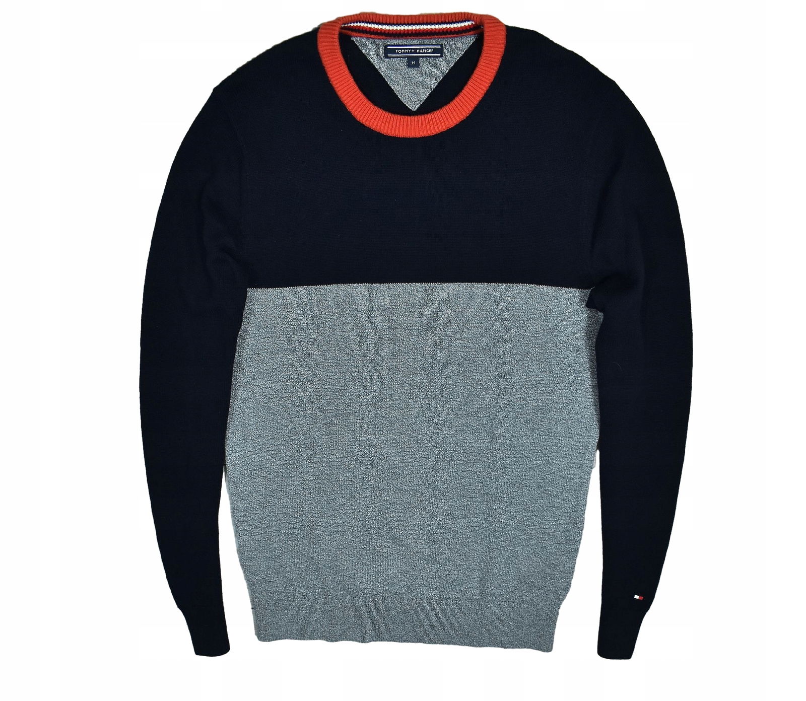 TOMMY HILFIGER Dwukolorowy Bawełniany Sweter z Dodatkiem Wełny M