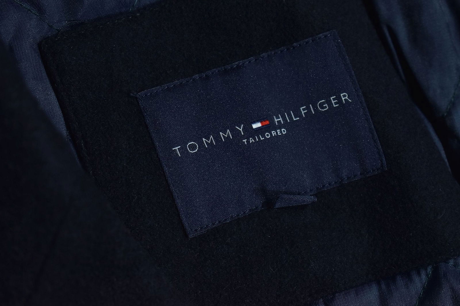 TOMMY HILFIGER Tailored Granatowy Wełniany Płaszcz Regular Fit 54