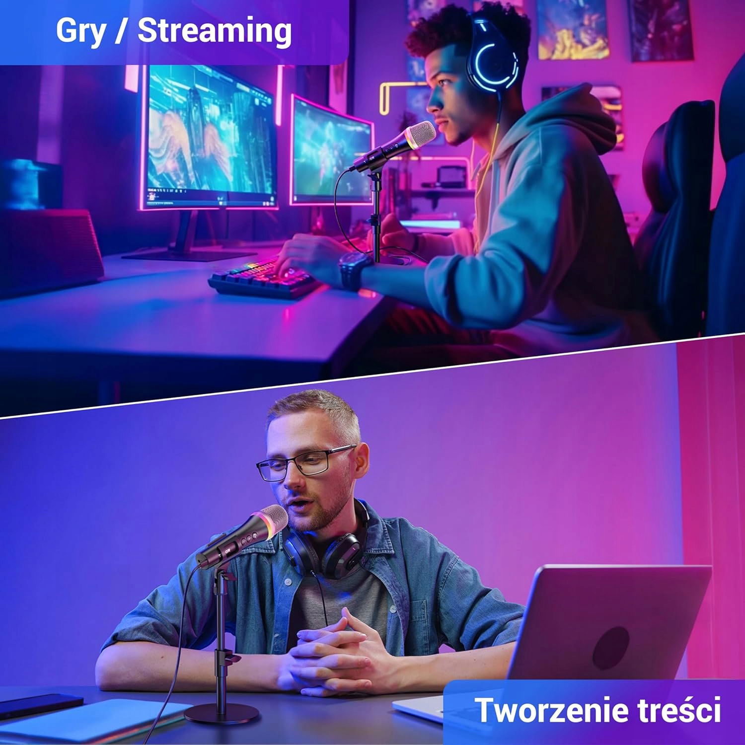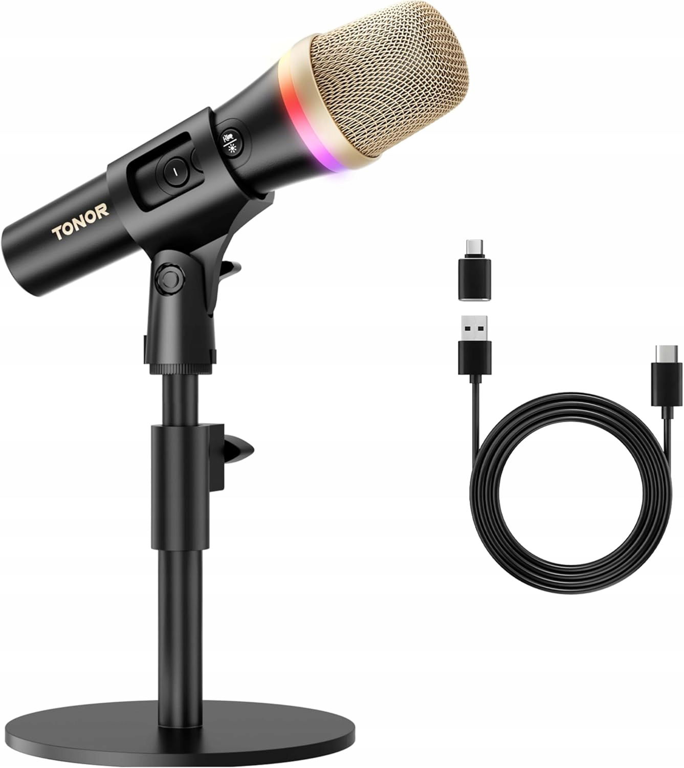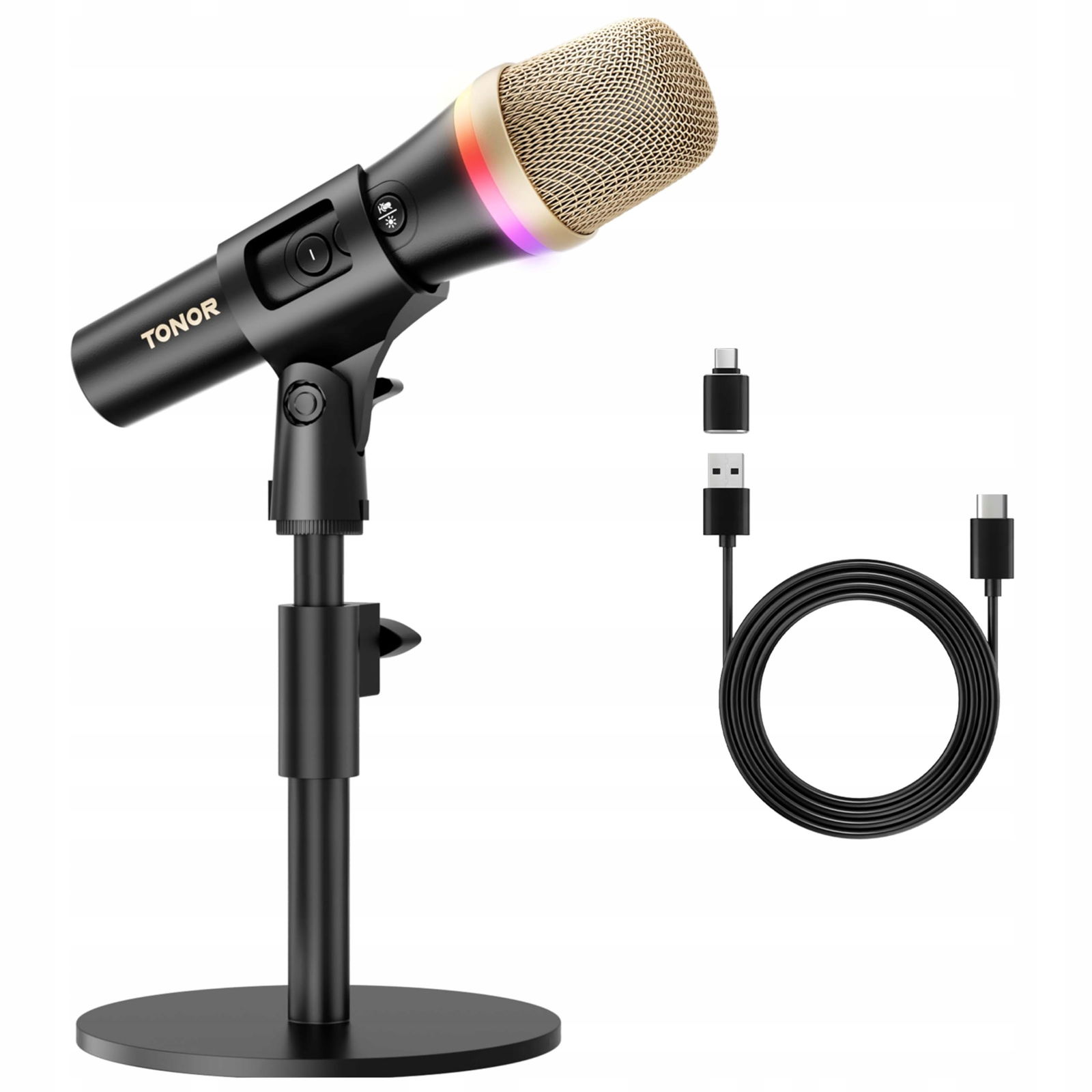 TONOR Mikrofon Dynamiczny USB Typ C RGB Do PC Gier Podcastów Studio Czarny