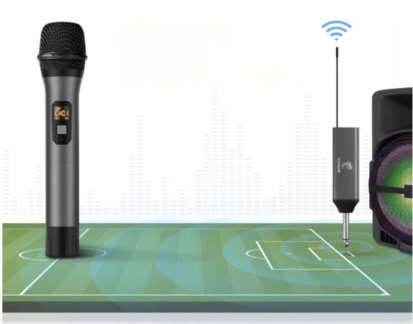 TONOR TW630 to profesjonalny zestaw bezprzewodowych mikrofonów dynamicznych UHF, idealny do karaoke, imprez, wesel, DJ-ów oraz konferencji. Wyposażony w metalową obudowę, zapewnia trwałość i wysoką jakość dźwięku.