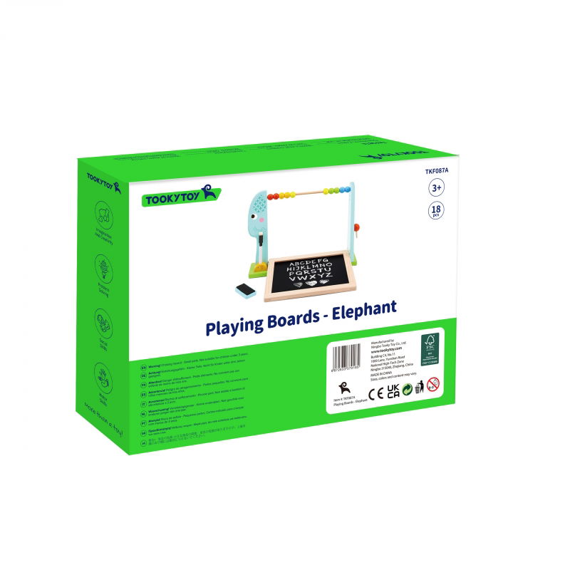 TOOKY TOY Stojący Słoń z Koralikami to dwustronna tablica z mini liczydłem. Produkt został wykonany z trwałego i grubegodrewna. Tablica bawi i uczy! Kolorowe elementy sprawią, że przyciągną każdego maluszka i zagwarantują mu wiele godzin zabawy. Zabawka nie posiada ostrych krawędzi i jest dobrze wyszlifowana dzięki czemu jest bezpieczna dla małych rączek twojej pociechy. Doskonali zdolności motoryczne,pobudza wyobraźnie i do tego rozwija koordynację ręka-oko. Dziecko może szlifować naukę cyfr oraz doskonalić zdolności plastyczne. Tej tablicy nie może zabraknąć w pokoju Twojego dziecka.