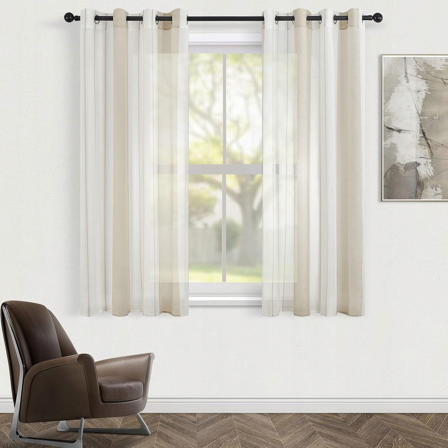 Wzornictwo w paski: półprzezroczyste zasłony przepuszczają światło dzienne, ale chronią przed bezpośrednim wpadaniem światła i sprawiają, że pomieszczenie nie jest ciemne. Dobra równowaga dla ochrony i światła. Dlatego idealnie nadają się jako dekoracja okna w wielu warstwach.