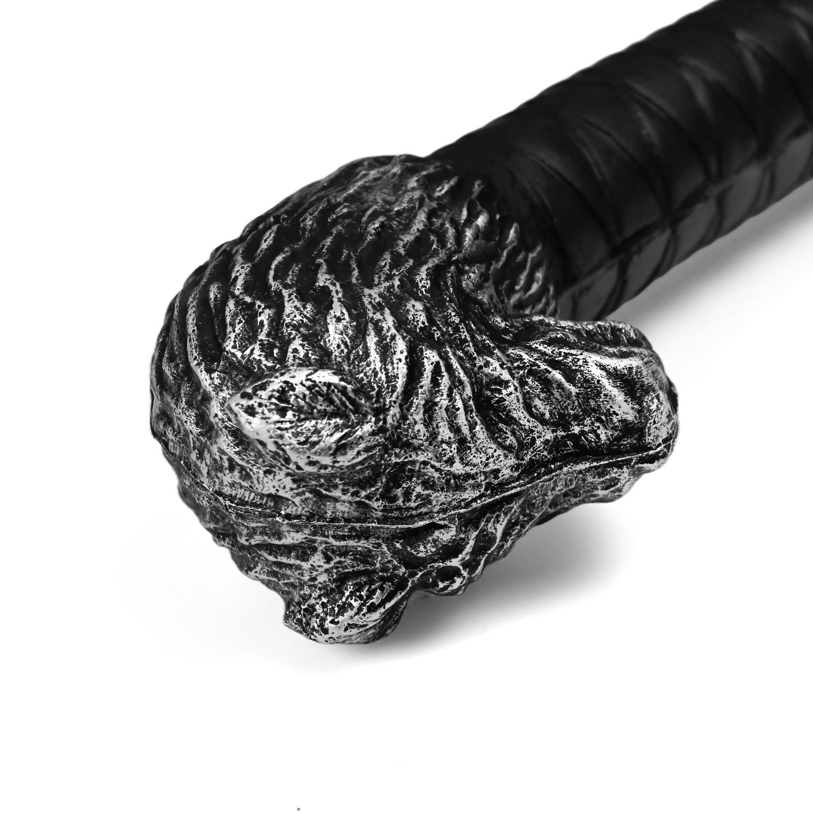 Ten piankowy topór wikingów, obowiązkowy przedmiot kolekcjonerski dla fanów serii Vikings, doskonale oddaje istotę epickiej sagi nordyckiej. Mierzący imponujące 55 cm topór jest wykonany z wysokiej jakości pianki, oferując lekką, ale wytrzymałą konstrukcję idealną zarówno do ekspozycji, jak i interaktywnego użytku. Topór ma misternie szczegółowe ostrze z ozdobnymi grawerunkami przypominającymi autentyczne rzemiosło Wikingów, w połączeniu z teksturowaną czarną rękojeścią, która zapewnia pewny i wygodny chwyt. Koniec rękojeści jest ozdobiony wzorem głowy wilka, symbolizującym siłę i lojalność, dzięki czemu jest to wyróżniający się element dla każdego fana Wikingów. Zaprojektowany dla kolekcjonerów i entuzjastów, ten piankowy topór Wikingów służy jako idealny element dekoracyjny, niezależnie od tego, czy jest prezentowany w kolekcji, czy używany jako część cosplayu lub imprez tematycznych. Dzięki bezpiecznemu materiałowi nadaje się do ekspozycji w pomieszczeniach, na spotkaniach fanów, a nawet do odgrywania ról bez uszczerbku dla jego autentycznego, wytrzymałego wyglądu. Dodaj kawałek nordyckiej legendy do swojej kolekcji już dziś dzięki temu kolekcjonerskiemu przedmiotowi Vikings. Uczcij ducha serialu dzięki tej skrupulatnie zaprojektowanej replice, uosabiającej odwagę i dziedzictwo wojowników wikingów. Ten topór to prawdziwy hołd dla fanów i symbol niezapomnianej podróży przez świat wikingów.