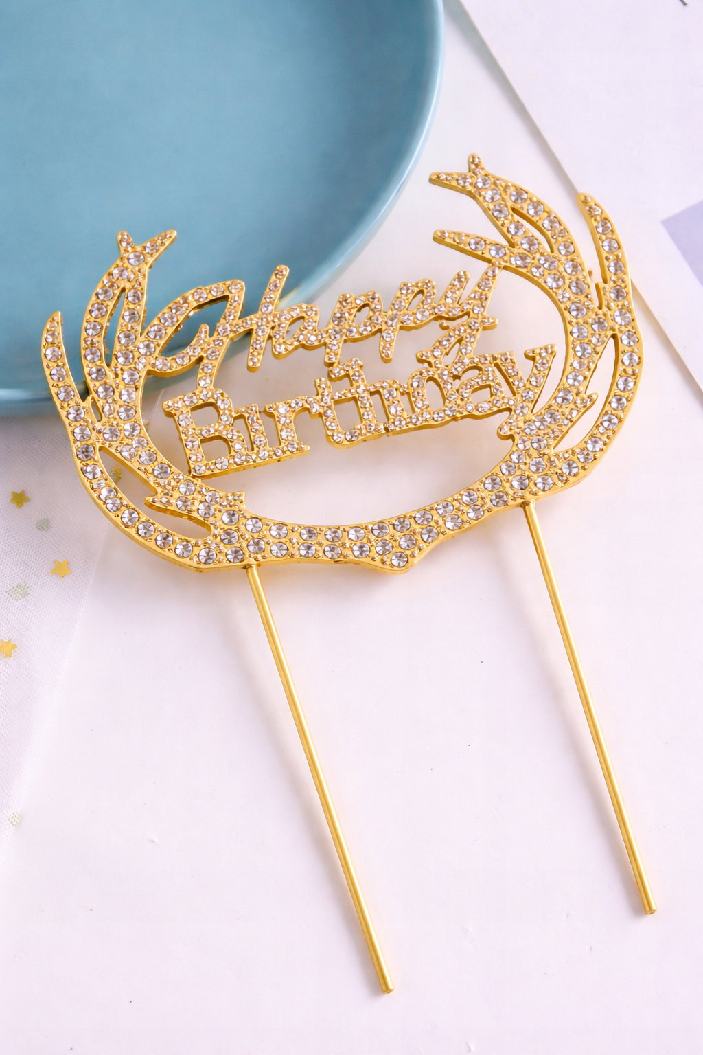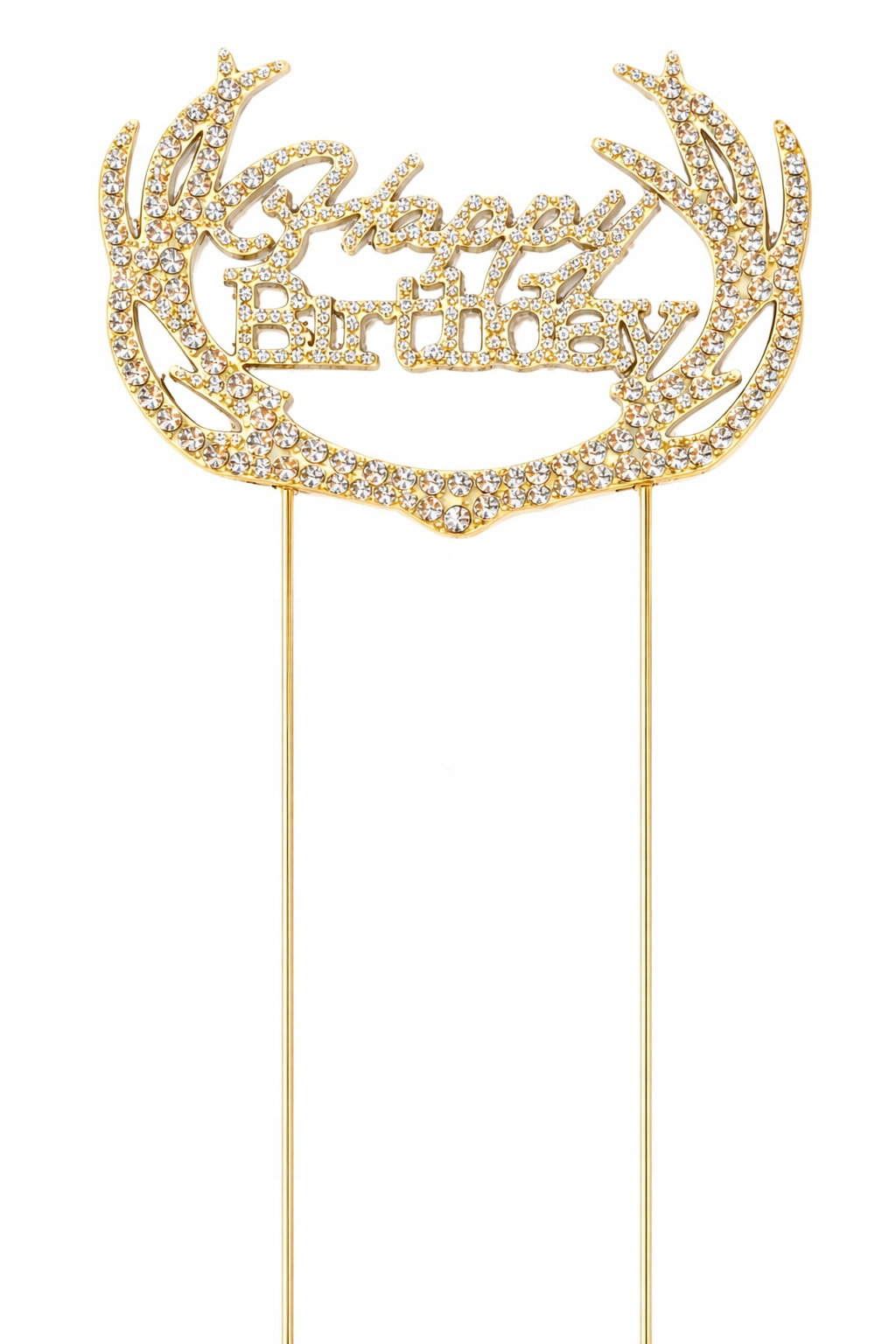 Topper na tort Happy Birthday złoty z kryształami – dekoracja na urodziny