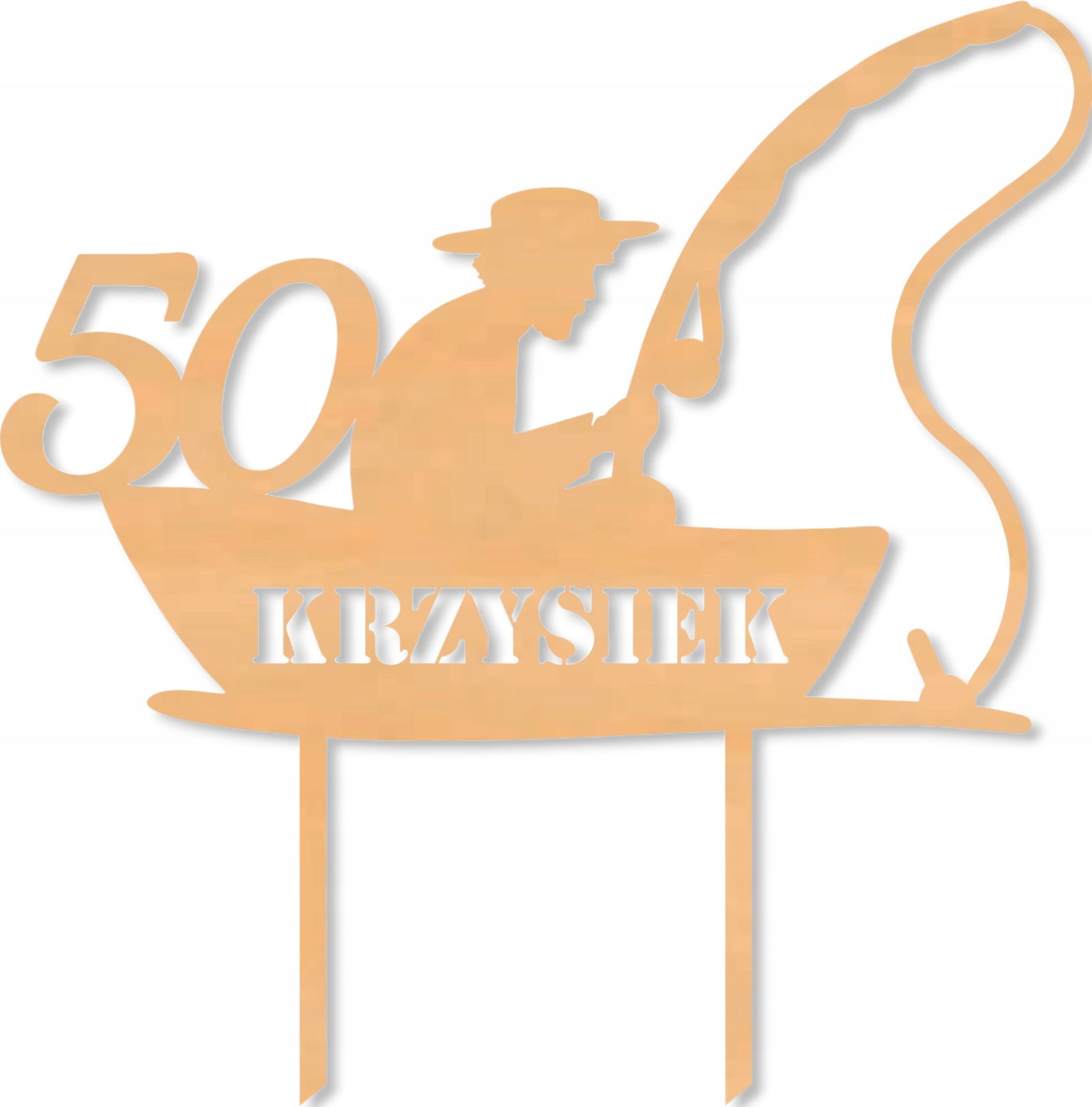 Topper na tort na urodziny wędkarz wędkarstwo ryby imie RP323