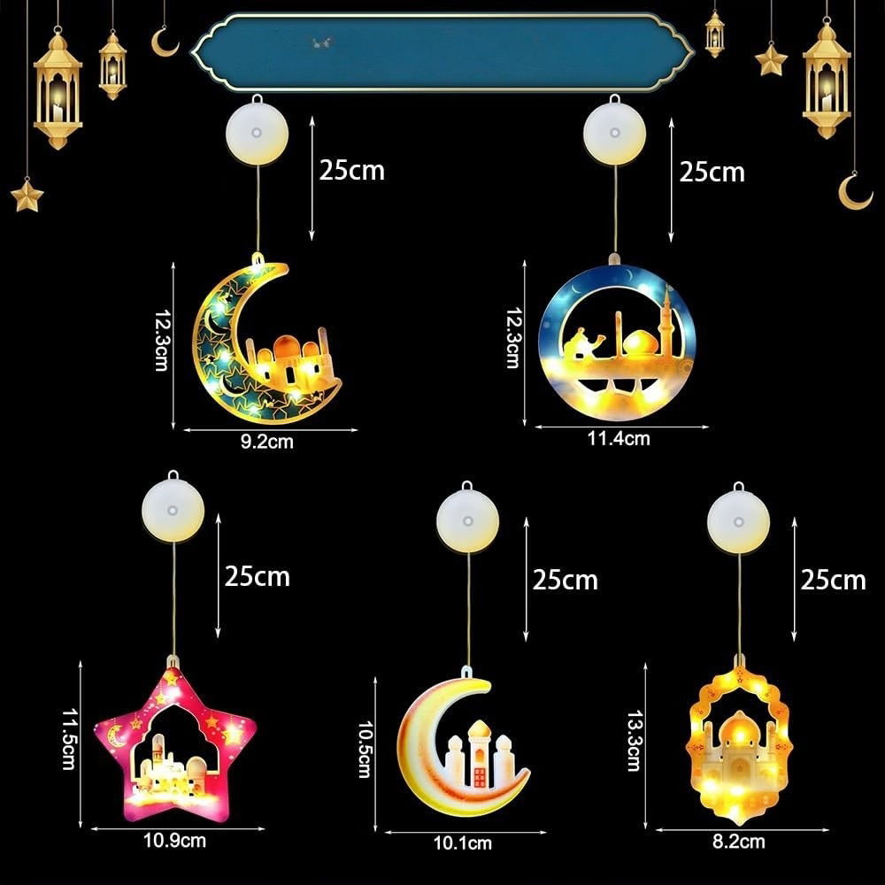 ✨Zestaw 5 lampek LED Ramadan Eid Mubarak z przyssawkami✨
