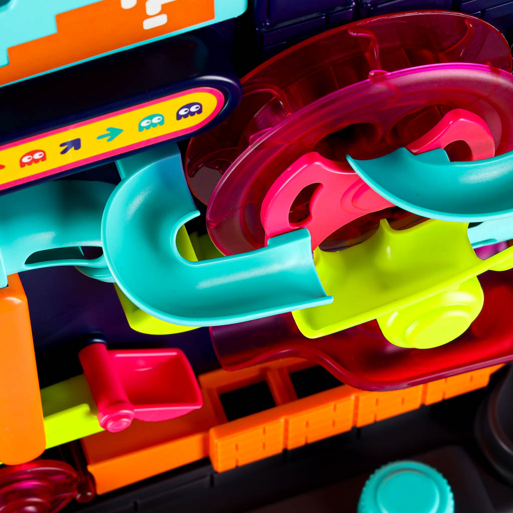 - Wspiera logiczne myślenie – zabawka prezentuje mechanizmy przyczynowo-skutkowe, które zachęcają do opracowywania strategii pokonywania przeszkód