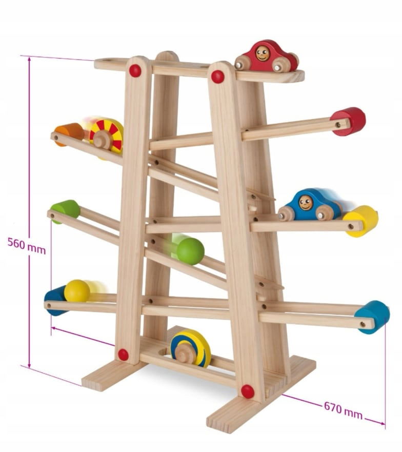 Tor Samochodowy Drewniany Zabawka Montessori 18 m+