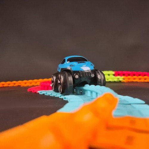 - DOWOLNE KOMBINACJE TORÓW – elementy toru są elastyczne i można układać z nich dowolne trasy. Wspólnie wymyślajcie różne konfiguracje torów jak spirale, nachylenia, podjazdy oraz zakręty, zmieniajcie kształty tras i zmierzcie się z czyhającymi przeszkodami!