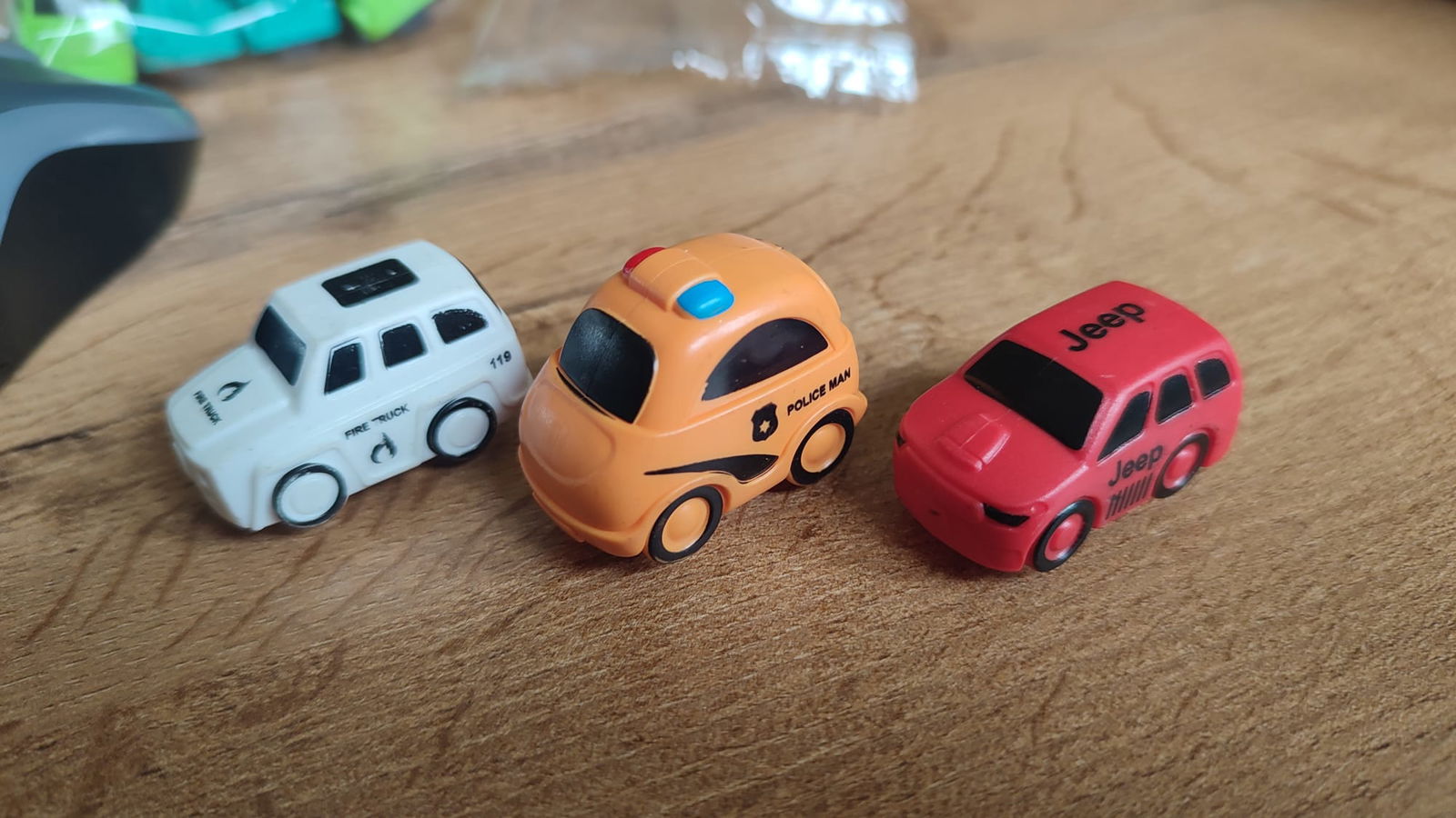 3 samochodziki z metalowymi kółkami (wielkość: 4 x 2,5 x 2,5 cm)