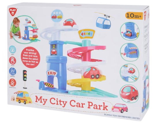 Tor Zjeżdżalnia Parking Wielopoziomowy Samochodzik Zabawka Playgo 10m+