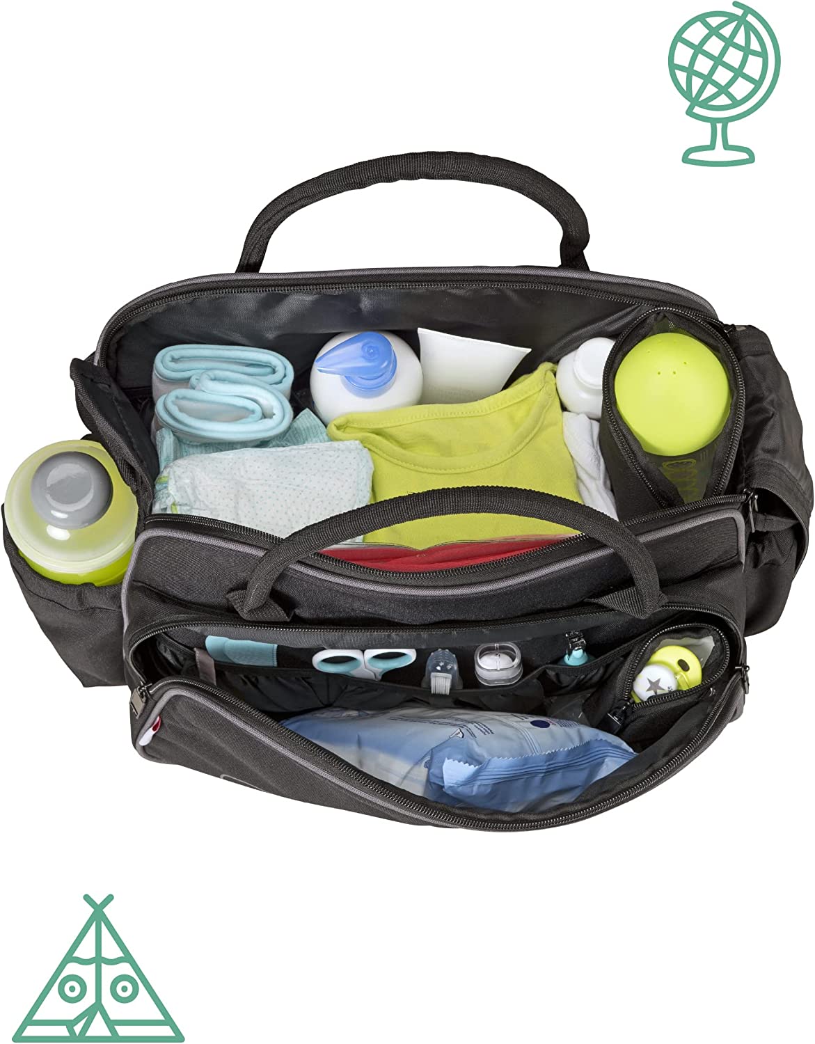 Praktyczny i funkcjonalny zestaw dla każdej młodej mamy. Torba pomieści bez trudu niezbędne dziecięce akcesoria. Torba dla mamy marki Badabulle jest nie tylko bardzo funkcjonalna i pojemna ale i designerska. Torba pomieści bez trudu niezbędne dziecięce akcesoria. Bez trudu zapakujesz do niej również twoje rzeczy: telefon, długopisy czy klucze. Duża zamykana na zamek błyskawiczny torba z przegrodami i bocznymi kieszeniami umożliwia komfortowe przechowywanie wszystko czego potrzebuje każda Mama dla siebie. Torba posiada główną kieszeń z dodatkowymi przegródkami i kieszonką. Taka ilość kieszeni pozwala na łatwe zorganizowanie, aby każdy produkt miał swoje miejsce. Pomieścisz w niej wszystko co potrzebne będzie podczas wycieczek i spacerów. Żadnych dodatkowych torebek i kosmetyczek – wszystko będzie pod ręką i na swoim miejscu odpowiednio zorganizowane! Oprócz doskonałego wyglądu nieprzypominającego „typowe” torby dla Mam posiada wiele dodatkowych akcesoriów. W środku znajdziesz niezbędniki pomagające w codziennej opiece i pielęgnacji dziecka. Świetnie zaprojektowana i doskonale wyglądająca torba posiadająca wiele funkcji i możliwości.