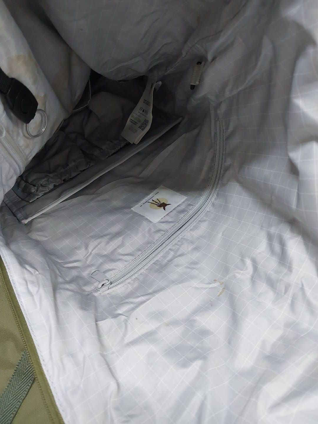 Funkcjonalny i trwały: zamek błyskawiczny na całej długości bocznej. Materiał jest wykonany w 100% z poliestru pochodzącego z recyklingu