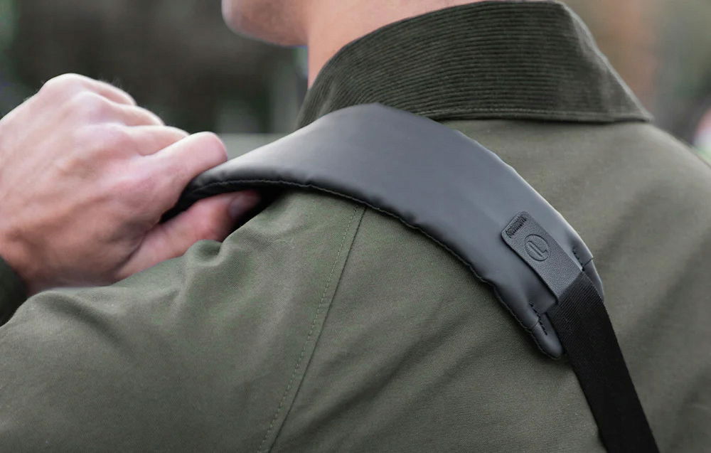 Model OneGo Solo V2 został wyposażony w specjalną klamrę, która umożliwia szybką regulację długości paska. Możesz też swobodnie nosić ją zarówno na lewym, jak i na prawym ramieniu. Jej dodatkowym atutem jest miękka podkładka z tworzywa EVA, która zmniejsza nacisk i zapewnia większy komfort. Ponadto praktyczny uchwyt ułatwia przenoszenie torby, a umieszczone na jej spodzie paski pozwalają na wygodny transport dodatkowego wyposażenia, na przykład statywu. Dostępna jest również niewielka kieszonka na AirTag, składana kieszeń na butelkę wody oraz przednia przegroda zapinana na zamek, która idealnie nadaje się do przechowywania smartfona, kart płatniczych czy kluczy.
